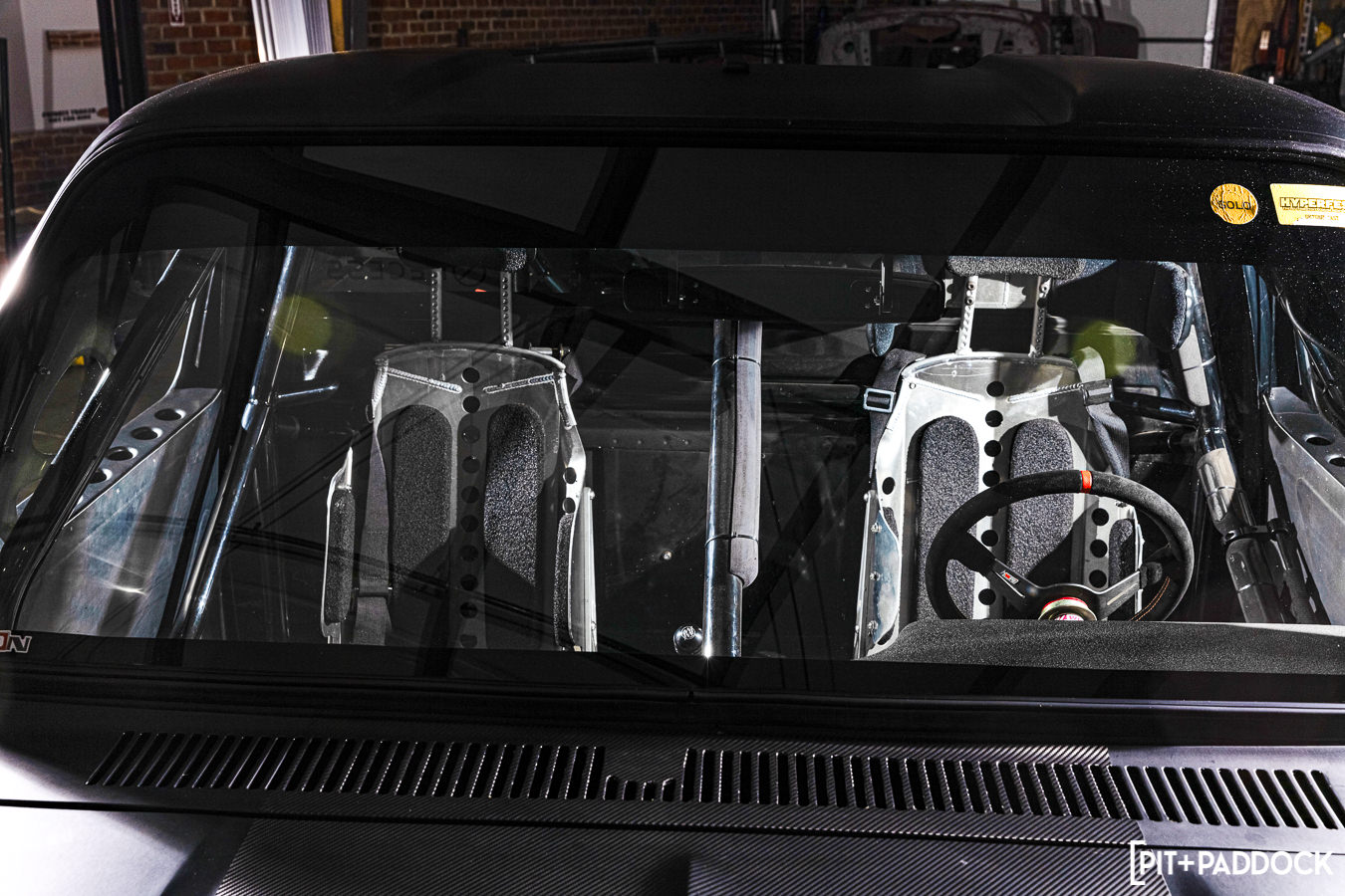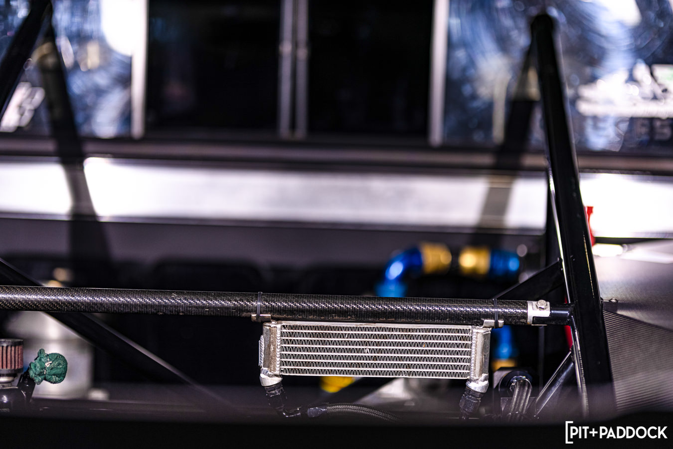 Carrying over from the engine, you’ll find a NASCAR-like feel inside the cab, but it isn’t all go and no show. Instead, the quality custom work elsewhere flows seamlessly into the interior. MRC built the dash out of carbon fiber and fabricated all panels, center console, and seats! With Holley control on board, Jimmy monitors all components with help from the company’s digital dash.