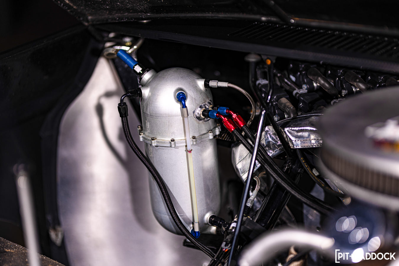 Jimmy’s goal is a purpose-built pro touring truck. So naturally, the drivetrain to match the insanity should fit between the frame rails. With the number of connections Jimmy and crew members have in the racing community, they were bound to turn over the suitable rock, and that they did. Robert Yates Racing has been working directly with Chevy Performance testing a new project designed for road racing. Jimmy and the C10 have been the front runner with in-vehicle research and development. They call it the RYR525. It’s a sealed, cost-contained LS3-based engine generating 525 horsepower and created to compete with open-built engines. With Jimmy’s help, it’s proven to be a huge success and is in line for production in 2022. The transmission from Andrews Products is unique. Jimmy can quickly change the four-speed gear ratios while a Tilton quadruple disc clutch connects the motor and transmission.