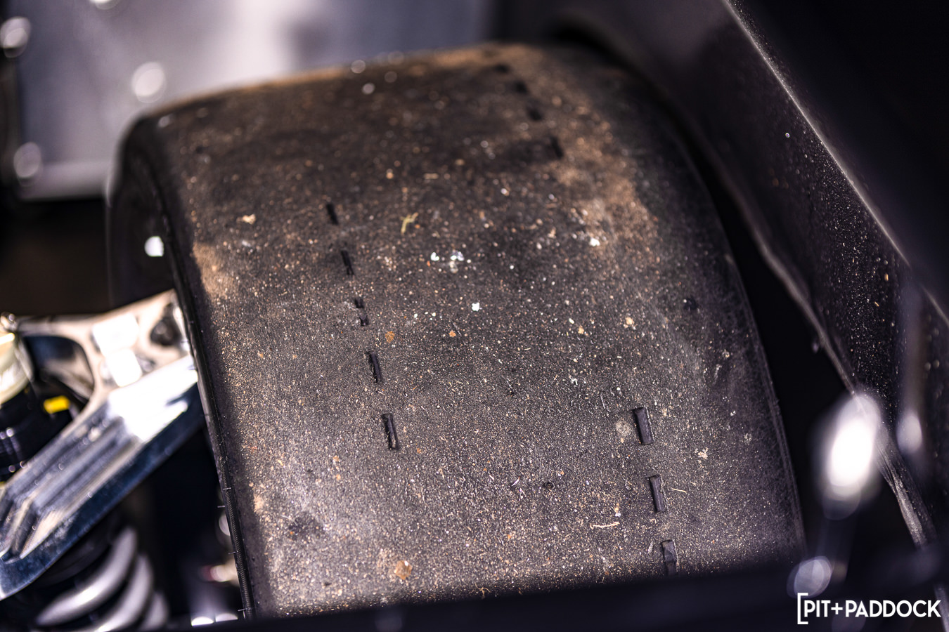 Believe it or not, Jimmy drives The Race Truck on the street, and boy, is it an attention grabber. No, this isn’t your grandpa’s old farm truck. The Chevy’s only factory pieces are the cab, grille, headlights, taillights, and door handles. For the rest, the team utilized sheet metal and carbon fiber to complete the body panels and aero package. The worked-over cab is wrapped in gloss and flat black. As a result, The Race Truck sits lean and mean on MRC-designed and machined wheels they call Outlaws. Wilwood 15-inch brakes with six-piston calipers sit behind the custom 19×11 wheels with 315/30/19 Hoosier R7 rubber in the front. The same Wilwood brakes reside in the rear but behind the massive 19×14 custom machined wheels with 345/30/19 Hoosier R7s.