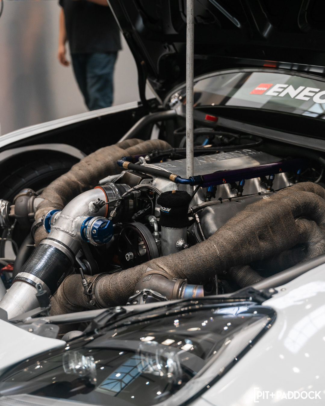 Aesthetically, most folks might be fooled by the new lights and bumpers as it wears components from the 2nd generation 2022 facelifted model. It is still the same car, and after some careful fabrication work by Eimer, the parts fit into place. A Pandem widebody conversion from Kei Miura was thrown into the mix, including a GT-style wing — something Dai wasn’t allowed to run in Formula DRIFT series due to rule restrictions. The final piece of the makeover is the livery design, which ditches the blue Turn 14 Distribution design for an arrangement that echoes the colors of Pit+Paddock and main partners ENEOS and Yokohama Tire.