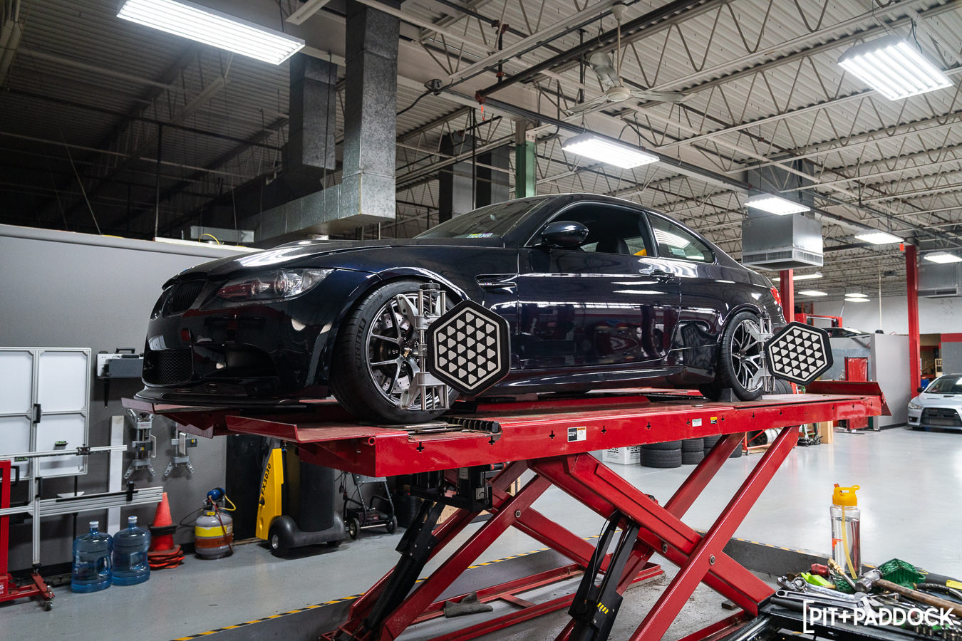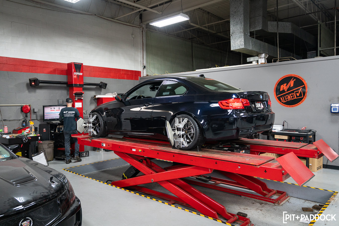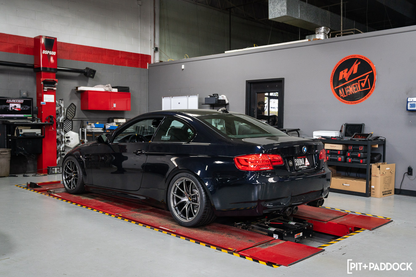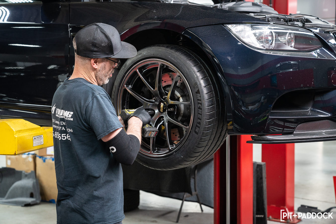 Next, Pat rounded out the installation using a Hunter touchless tire mounting machine to strap the Michelins to their final resting place on the BBS RI-A wheels. Lastly, perching the E92 atop R/T Tuning’s Hunter in-ground alignment rack and trueing up all of the angles. There’s plenty more to come on Project E92, so stay tuned for the next phase of modifications.
