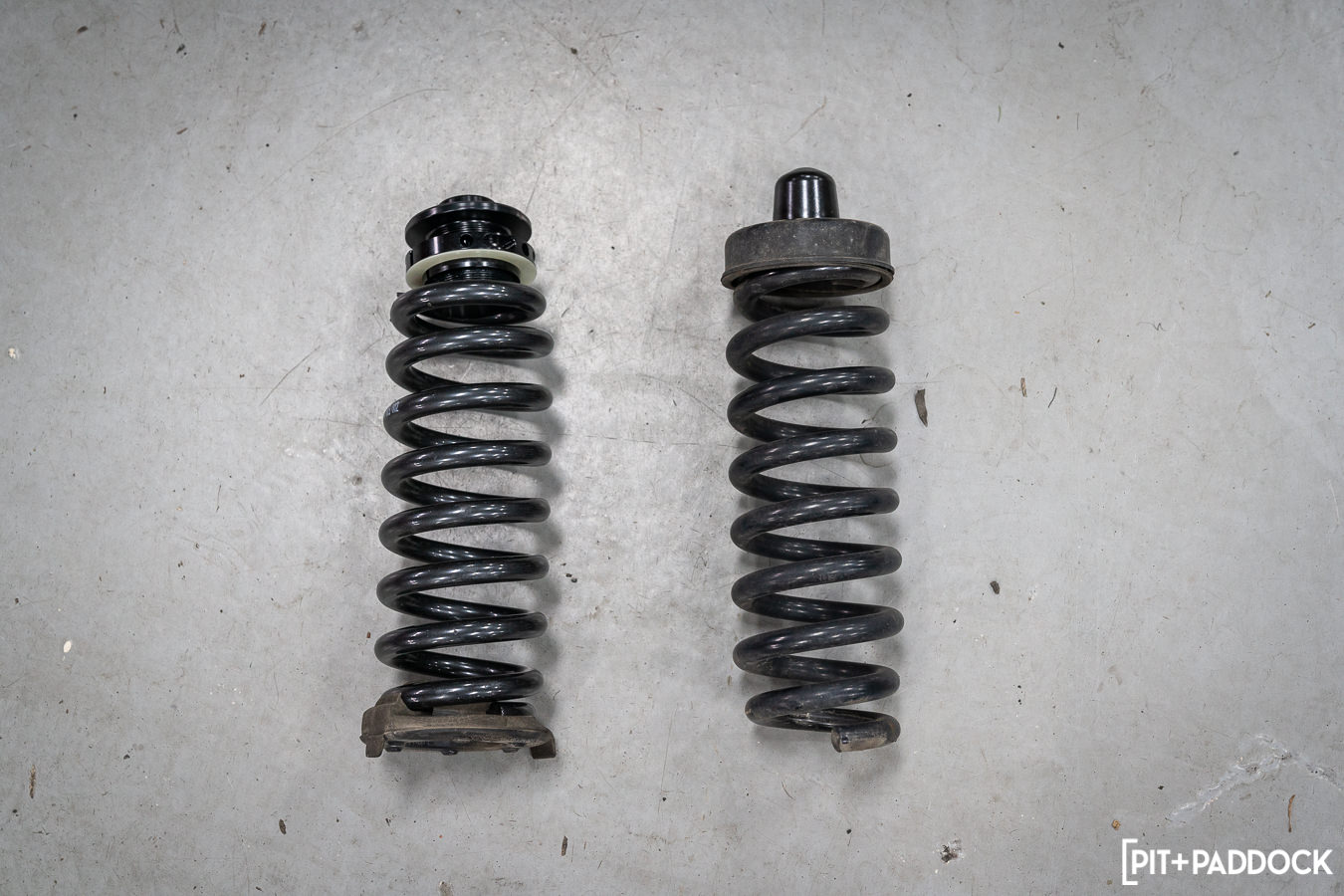 Since its inception in 2000, AST has continuously evolved and improved. Developing more advanced and specialized motorsport-derived suspension systems for competition and road use. Now, AST does offer its heavy-duty 5200 series. However, because we’re going for a more streetable setup, we selected the 1-way monotube 5100 Series, which utilizes inverted technology. A race-proven design, inverted technology produces an extremely strong damper, offering better suspension geometry under heavy lateral and braking loads, which can be experienced during either road or track driving. By incorporating a knob for rebound adjustment, the 5100 Series allows fine-tuning of the shock absorber’s extension rate. With the monotube design, a floating piston separates the oil and nitrogen, allowing for a larger piston and increased damper performance. Other features include steel threaded shock bodies, height-adjustable collars, and 14mm diameter internal pistons. We really like that these utilize the factory mounting locations. Still, our favorite aspect is the ability to revalve them for specific characteristics. That, and they’re fully serviceable and rebuildable, which will come in handy after navigating the treacherous Pennsylvania roads for a spell.