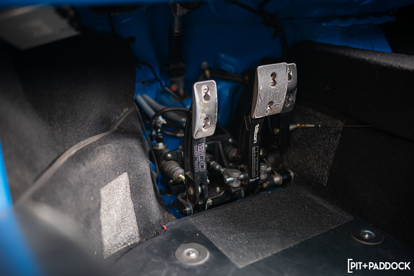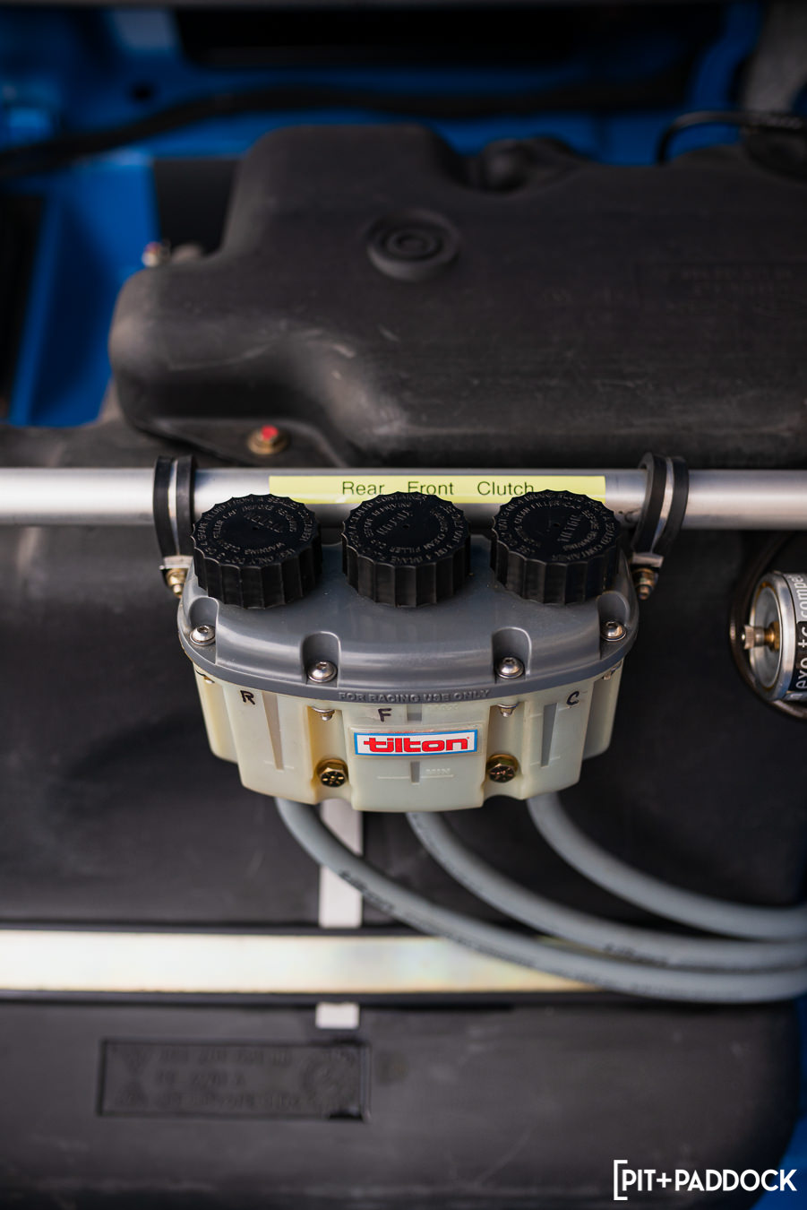 The focus for Tim’s RSR 993 was primarily for the track, so other than the Alcantara headliners, dash, and custom door cards, the interior is pretty bare. A cage was welded in with OMP bucket seats, and Schroth Racing 6-point harnesses for safety. A Tilton pedal box for footwork controls the throttle and braking. A dual master cylinder helps adjust front and rear brake bias with an adjustment knob located on the dash.