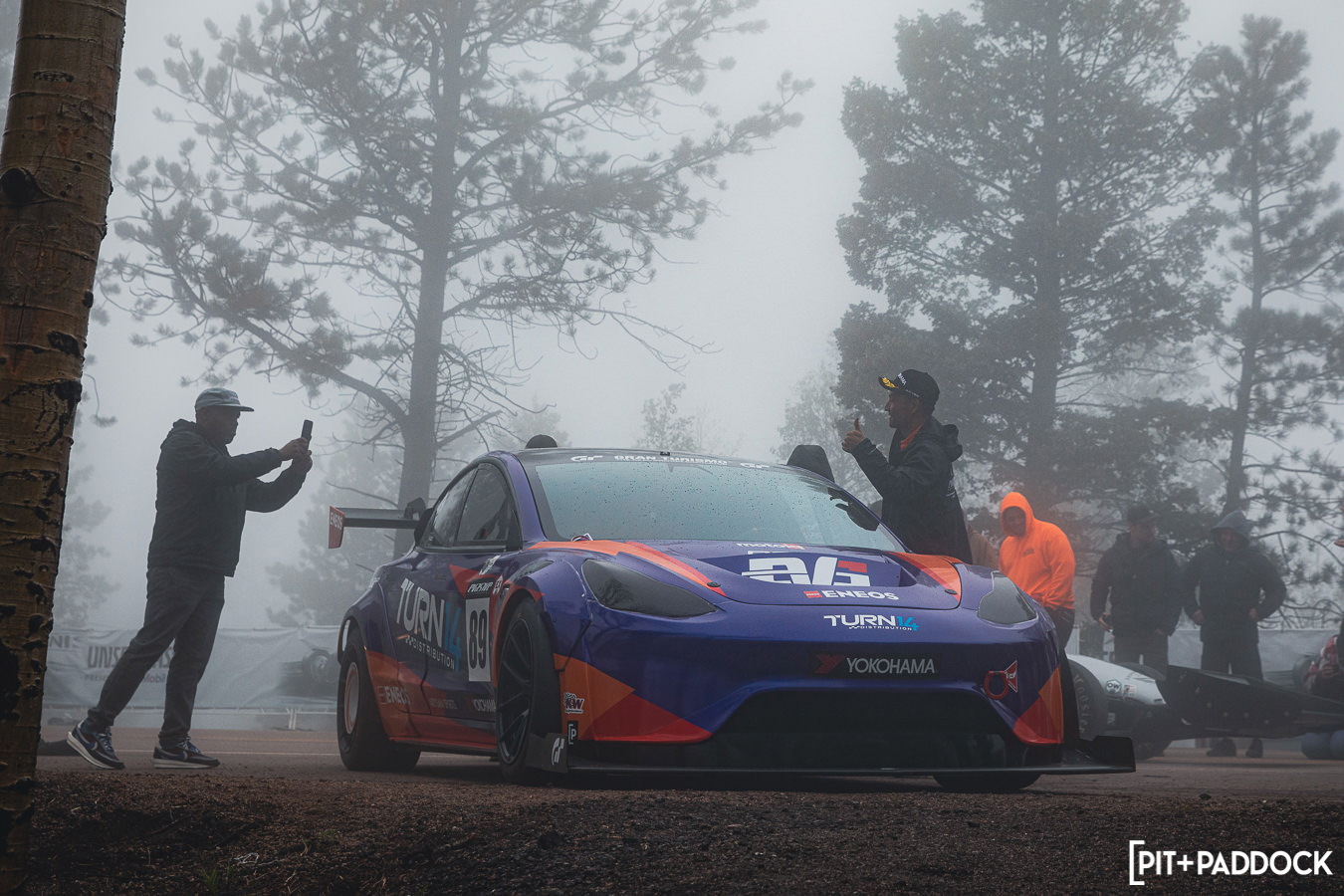 As you can imagine, come race day, and less than 12 hours later, drivers and teams were on high alert as they wouldn’t know if there would be any delays or if there was the possibility of race officials shortening the course again like last year. The rain held off, but patches of wet pavement and near-zero visibility due to the dense fog made the 100th running of Pikes Peak International Hill Climb one of the sketchiest in history, even for the most veteran drivers.