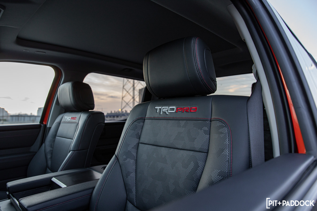 Cruising around town was not only relaxing but gratifying. I’ve never felt so at ease behind the steering wheel of a big truck. There’s admirable handling performance, too. Zipping around twisty corners and hugging sharp on- and offramps were fun sort of, in a silly imaginative way. There’s obviously some body roll, but the 6,000-pound Tundra isn’t afraid and can move with a bit of grace, like a sumo wrestler. I also grade the overall ride comfort above average as it’s not overly stiff or bouncy. This is much thanks to the new five-link coil-spring rear suspension that helps keep the rear-end planted and TRD Pro-specific Fox shocks which allow for high-speed suspension travel that smooths out bumps on and off the road.