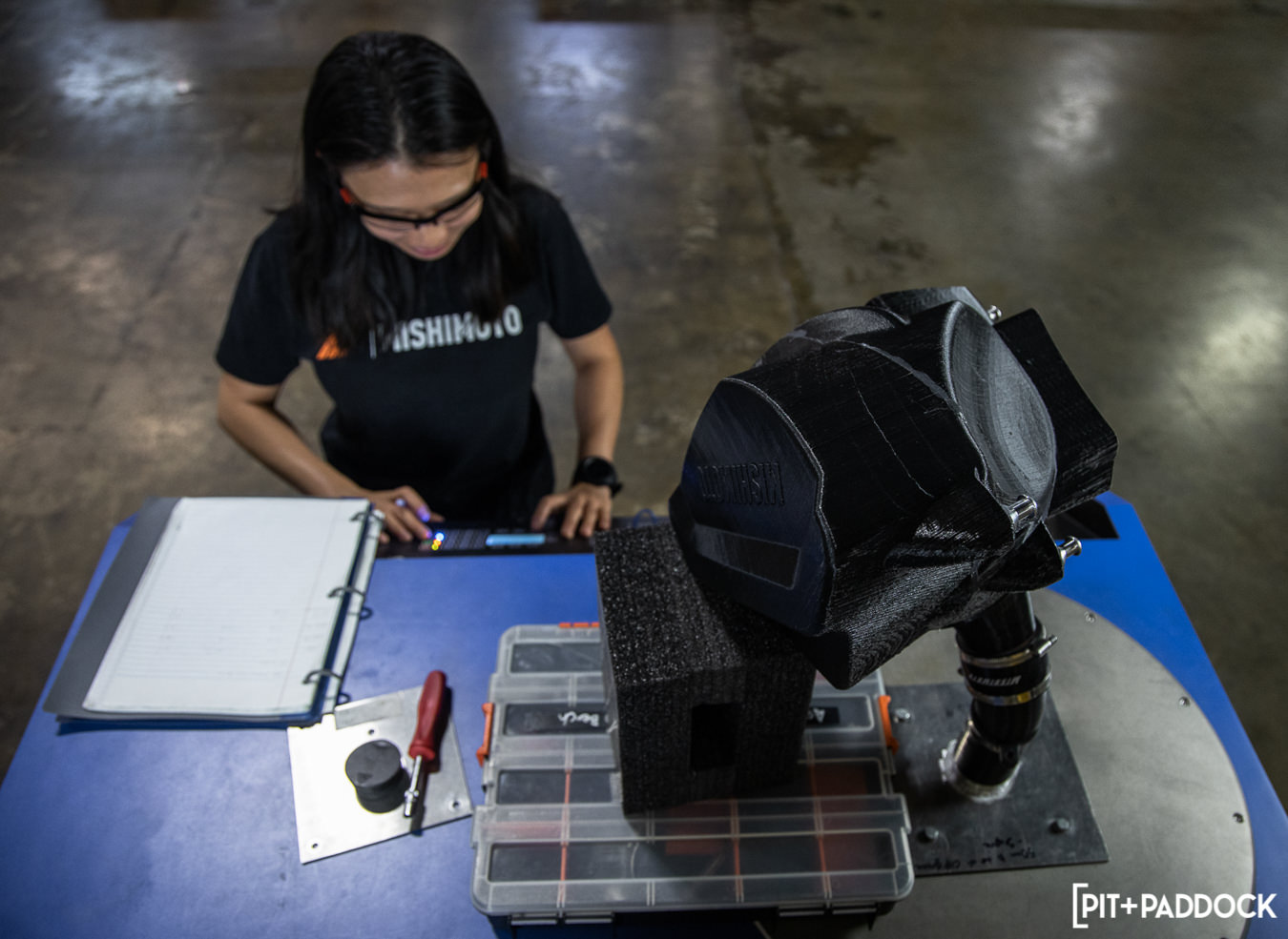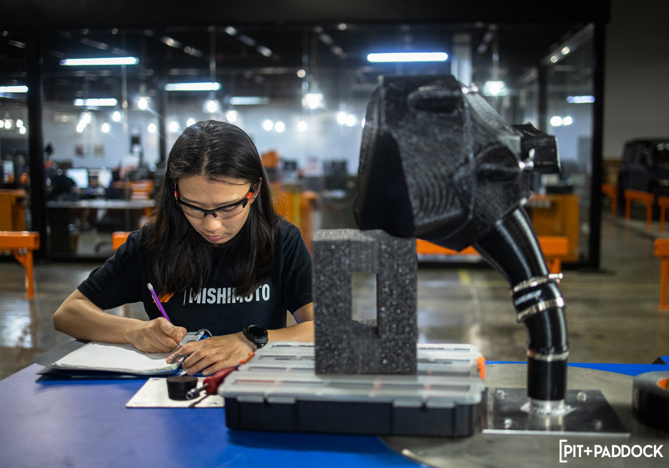 The engineers take this data, workspace, and experience from previous intake concepts to create the new parts. Mishimoto has opted to use cross-linked polyethylene (XLPE) rotational-molded construction that allows for complex shapes and heat resistance. The first batch of prototypes was brought to fruition by Mishimoto’s 3D printers and underwent an annealing process to further protect from high engine temps. Finally, the turbo snout was created through selective laser sintering. This process uses a laser to cure nylon powder into a specific shape for even more precise tolerances. In the final step, once everything is tight and fits appropriately, the prototype heads to the flow bench to be measured against the restrictive OEM system.
