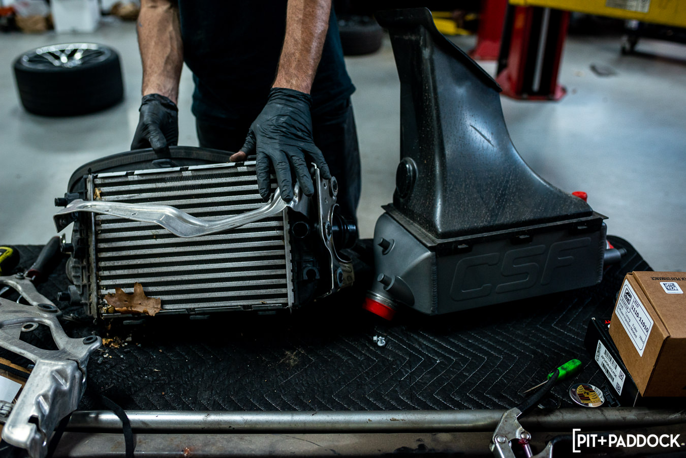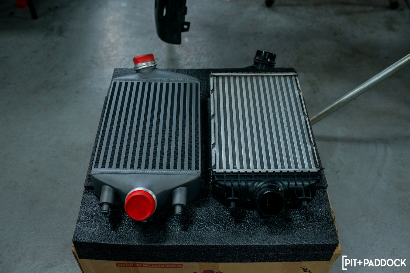 Our CSF intercoolers required trimming of the OE plastic shrouds before reassembly. Still, it was a simple procedure. All OE items were reconnected to the new intercoolers, and the performance units were fastened into the factory mounting location.
