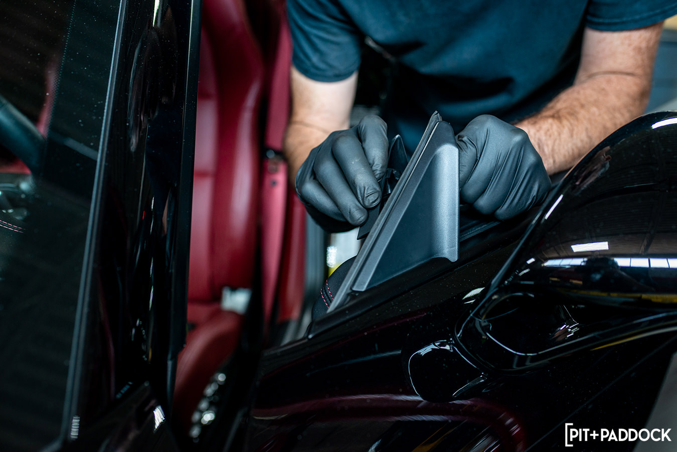 You’re cruising around a winding back road on a perfect day. Radio turned up with your favorite music blasting. You press your window button down to enjoy the outside weather, and your eardrums are immediately greeted with immense pulsating pressure and the sound of a helicopter cutting through the air. That’s buffeting. It’s an issue with newer generations of the Porsche Boxster, Cayman, and even 911. Fear not, though. AWE has the solution: its Foiler Wind Diffuser. Essentially, a small spoiler that replaces the flat plastic triangle piece where the window meets the door frame (behind the side view mirror). Constructed from UV-stabilized injection-molded plastic, it will retain an OE style while redirecting the airflow and fixing the buffeting. The Foilers have a pretty simple installation process, too, but we’ll get to that soon.