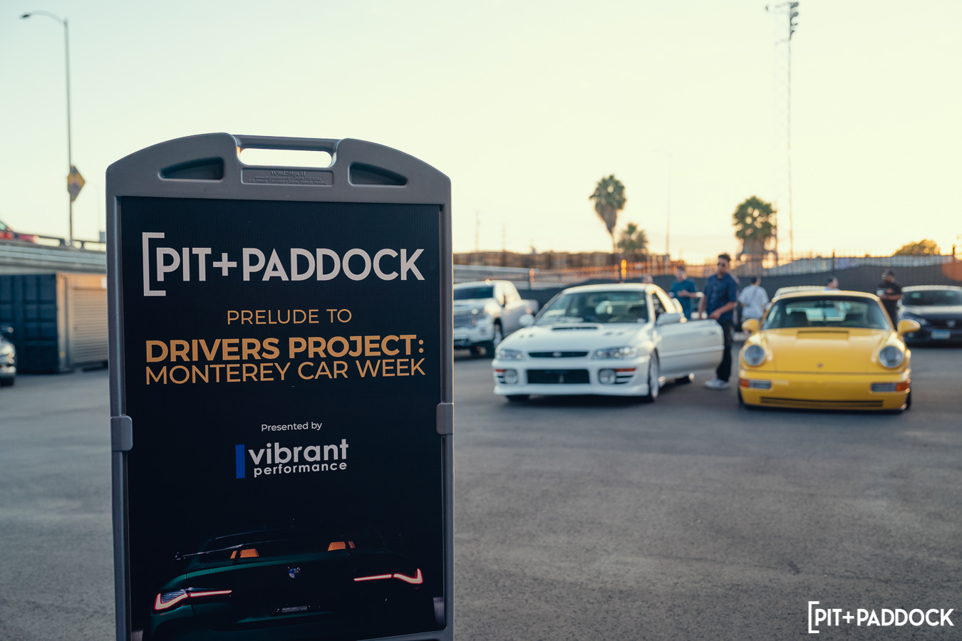 - Pit+Paddock organized a Tuesday night reception in downtown Los Angeles with presenting partner Vibrant Performance to welcome out-of-town partners attending the Drivers Project: Monterey Car Week road trip experience.