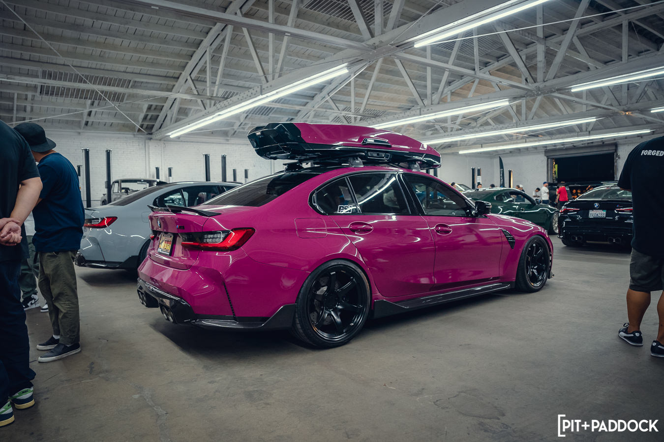 - A pop-up curated car show inside Auto Conduct LA showcased a selection of modified BMW G80/G82 builds, which included IND Distribution’s British Racing Green M4, Art of Attack’s race-spec M4, Precision Sports’ M3, and Titan 7’s M3.