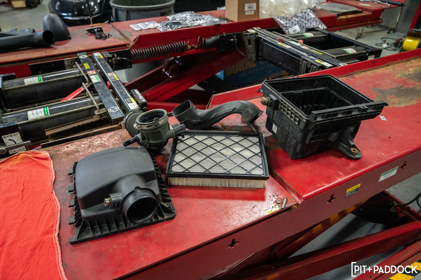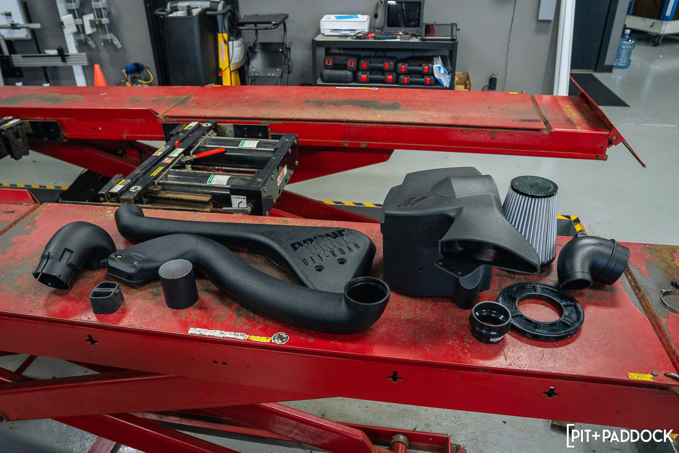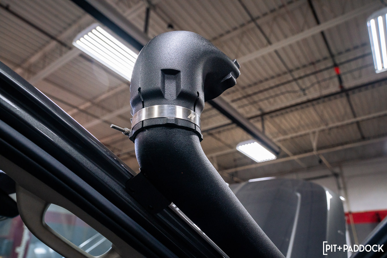 In line with most of the products we’ve covered in the past, this is a medium dog installation. It’s a fairly direct process but requires tools only the big dogs might have. We’ll start with removing all of the hardware and clamps holding the factory intake box and tubing components. This space gives a perfect sight to the snorkel’s route.
