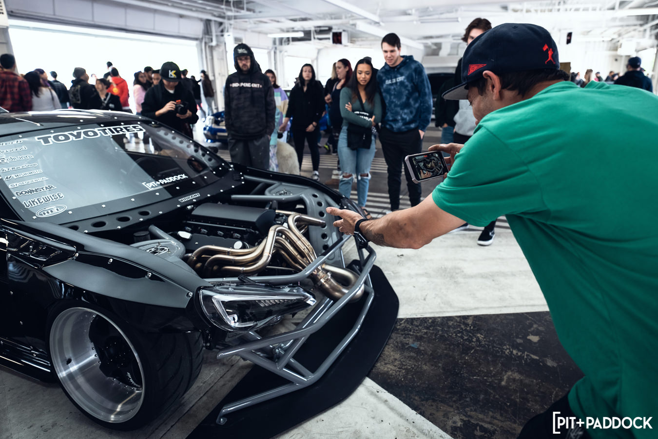 A big reason behind our successful gathering was one man: Cam Cocalis brought his tube-chassis, LS3-swapped Toyota 86 down for its first public viewing. Cam is a 21-year-old self-taught fabricator and car builder from Denver, Colorado, and he’s been meticulously building his drift 86 for the last five years. After revealing the car at the 2022 SEMA Show in the Toyo Tires Treadpass (where it received top honors in SEMA Battle of the Builders), we invited Cam to our Cars+Coffee so the enthusiast community could appreciate all his hard work. Sitting underneath Ancillary Studios’ massive light bank made it that much sweeter, with hundreds of cameras capturing photos of the 86 all morning. After the event, Cam told us, “It was an honor to be invited as the feature vehicle of the Vibrant Performance and Pit+Paddock Cars+Coffee meet. This event gave me the opportunity to showcase the car to the public, since it had only been at trade shows up until this point, and to share my story with a whole different group of faces. I had the chance to meet so many amazing people and have so many meaningful conversations. Overall, it was an awesome event, and I was happy that I had the opportunity to attend.”