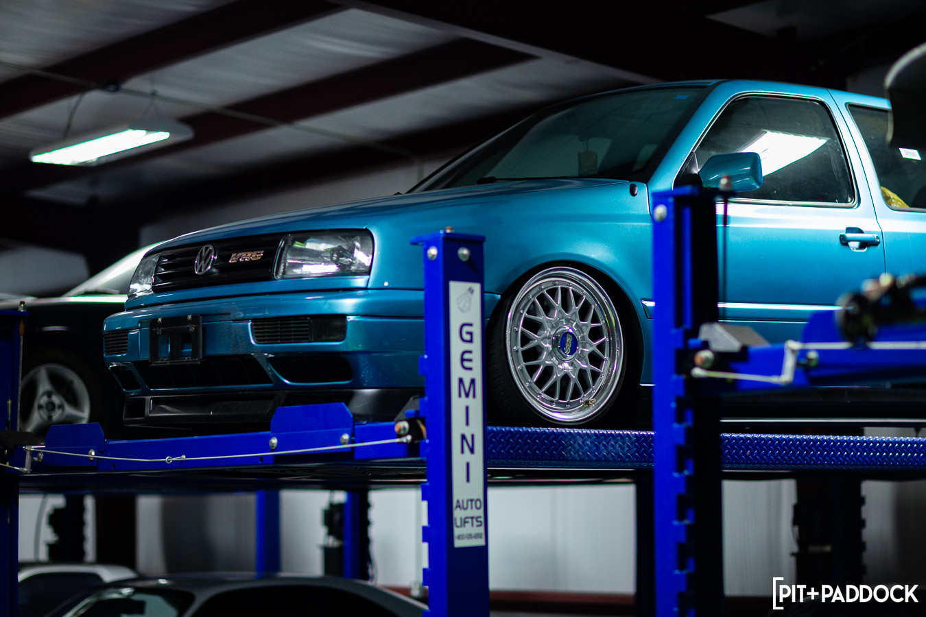 Some satellite buildings were home to more of Drift HQ’s parts development operations and car storage. The former of which I was introduced to LZ’s first car which he had recently located, purchased back, and restored — with a turbocharged S54 to boot. I enjoyed seeing his expansive collection of cars, not necessarily for the volume, but because of the sheer variety. It’s rare to find a MKIII GTI nestled into conjoining garage areas with an Evo VI, or a fully modified drift-spec FC RX-7 in the same space as factory pristine E36 M3s.