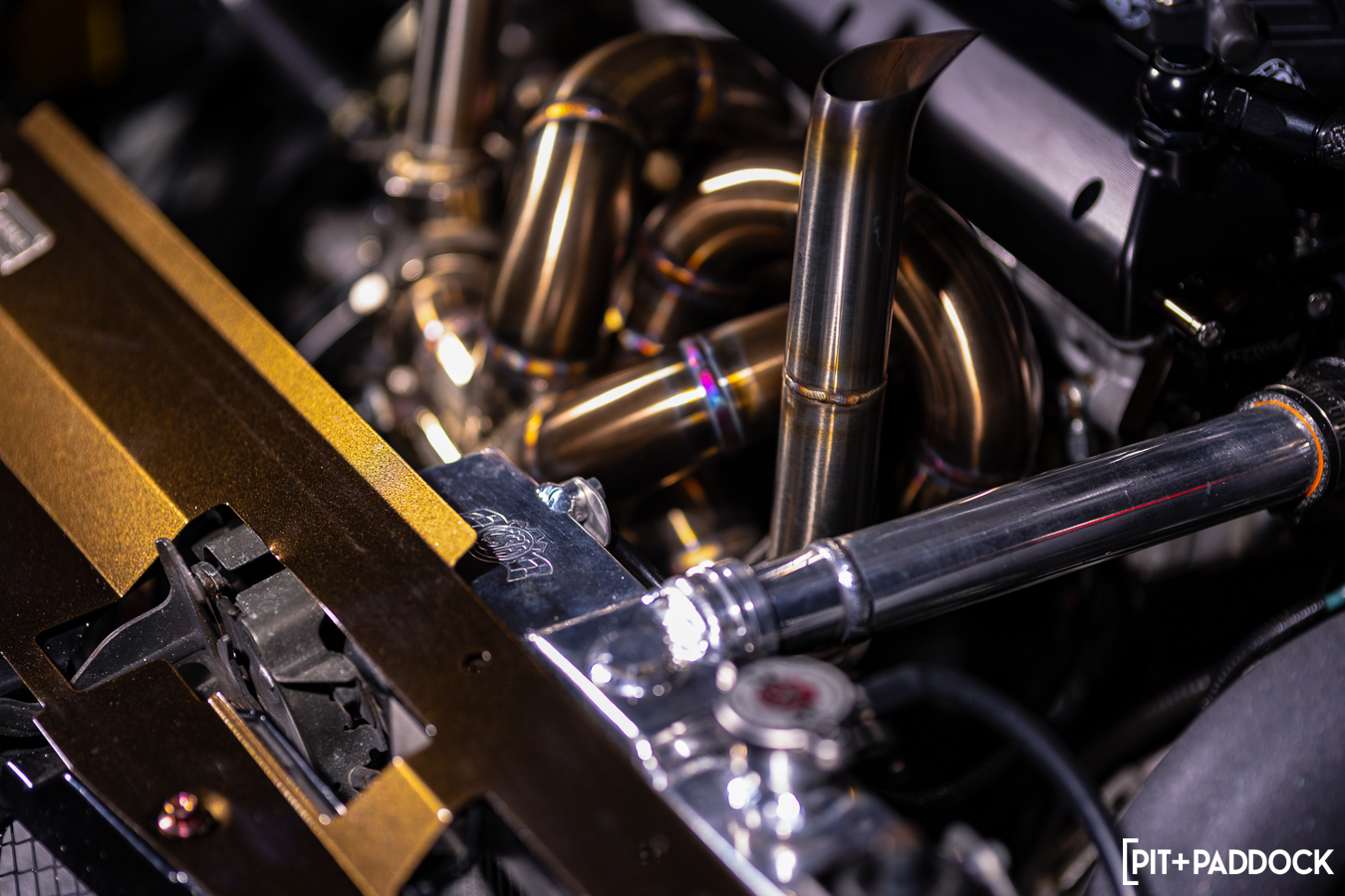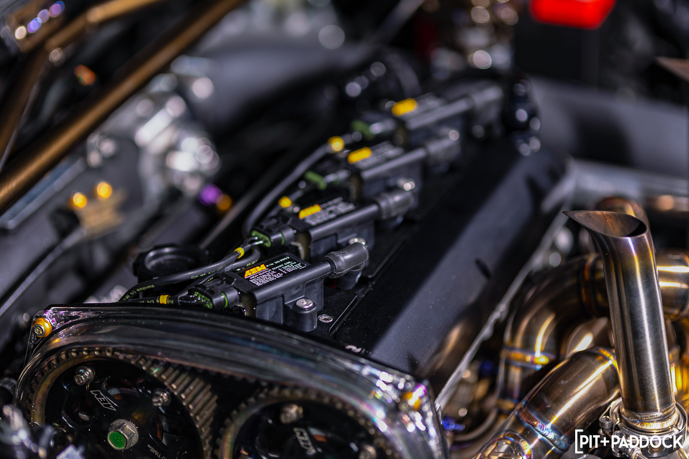 With the rest of the car prepped for loftier power numbers, Soules got to work on massaging the 4G63 with a “no expenses spared” mindset. Along with Darius from Driven Performance, he installed a custom set of outlaw pistons and aluminum rods (one of three cars in the world with the combination), GSC S2 cams, a complete Supertech valvetrain, a Skunk2 Racing intake manifold, and a host of other goodies. Rather than a 2.3-liter stroker, he used a polished 88mm stock stroke crank to create a “Long Rod” 2.0-liter motor to maximize revs.