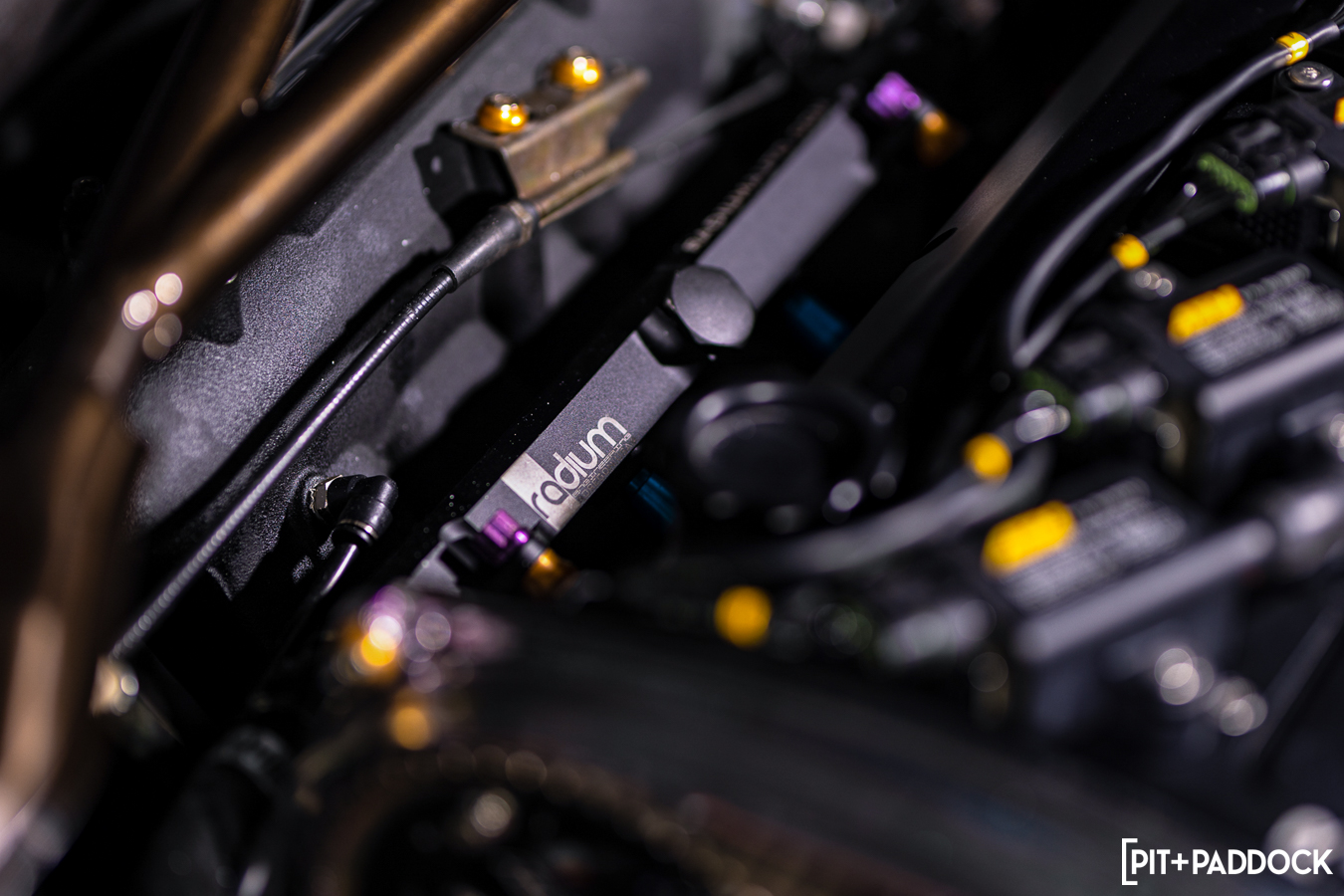 The forward-facing Precision 6875 turbo sits within sight behind the grill. Two Turbosmart 40mm Comgate wastegate pipes not-so-discreetly exit the hood’s heat vent. An Archer Fab billet front mount was integrated into the bumper exit titanium exhaust — another beautiful Darius creation. All said and done, the team estimates that the Evo makes a mind-boggling, yet completely streetable 1100whp.