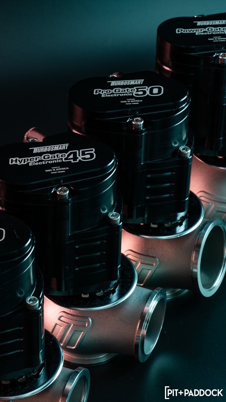 Two years later, Turbosmart released another revolutionary electronically controlled external wastegate: the Electronic Straight Gate 50 (eSG50). The eSG50 is a butterfly-style, liquid-cooled external wastegate; the proprietary 50mm butterfly valve design boasts all the control of a traditional poppet-style wastegate, but with a broad range of response. Simply put, this is in fact the highest flowing and most linear wastegate in the industry. Like its poppet-style counterpart, this new variant offers full electronic standalone ECU control — no diaphragms, springs, or compressed gas are required — and as such, saves considerable weight over its pneumatic predecessors.