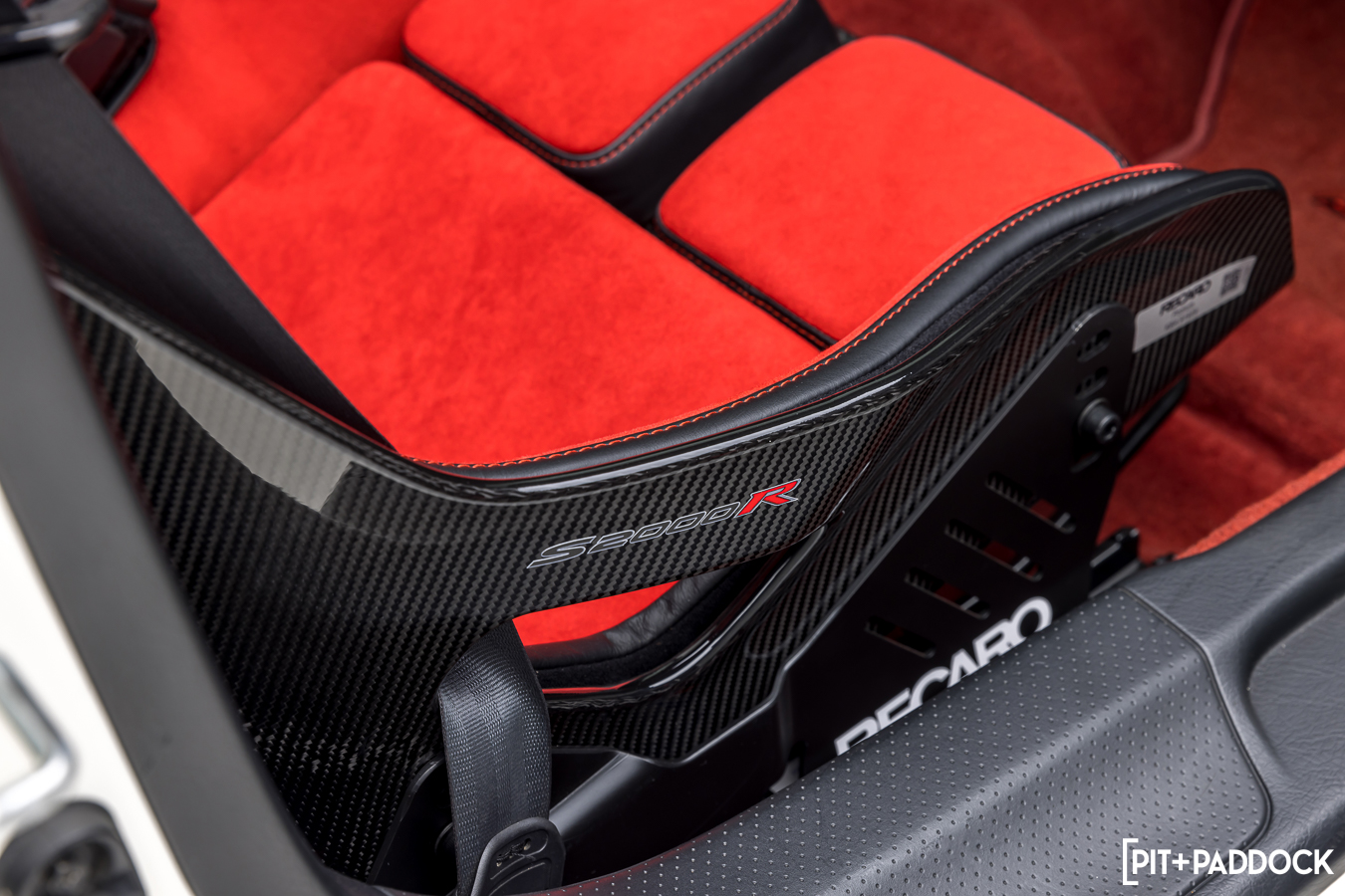 Chassis #000, as it has been called, preserves its sense of subtlety throughout. Okay, the red Recaro Podium carbon fiber buckets aren’t exactly low-key, but Honda fitted the original S2000 with quite a loud pair of red seats, too. Aside from that indulgence, a set of EVS Tuning carbon fiber door cards and Alcantara treatments to the dash and trim round out a very tidy cabin. Mike Chang, co-president of Evasive Motorsports, admits that the interior is “mostly all stuff anyone can purchase”, but alludes to future plans to make more pieces that are tailored to the S2000R exclusively.