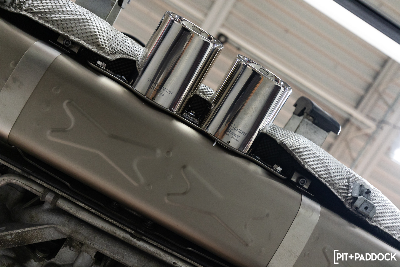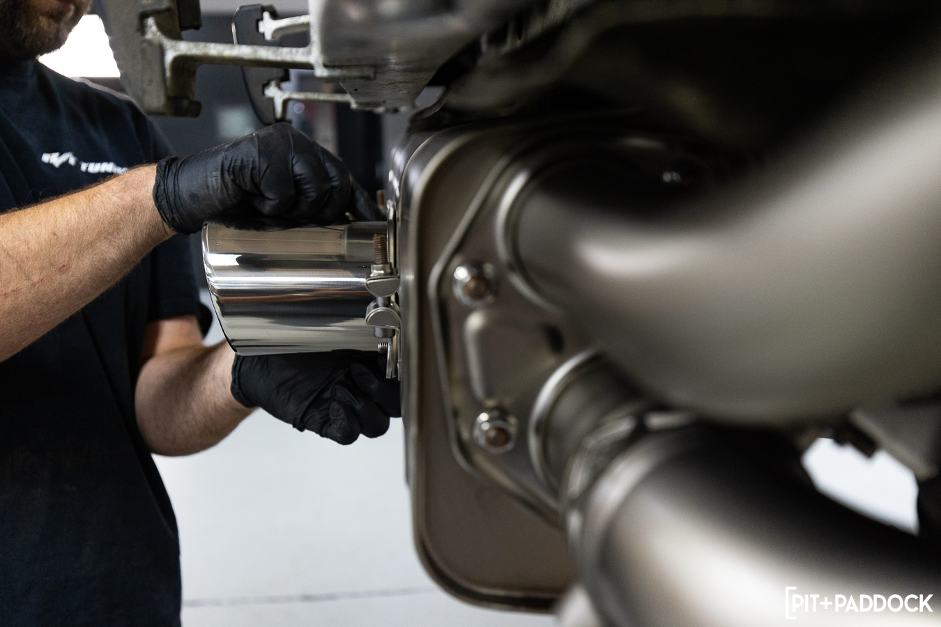 PRO TIP: Removing the rear bumper will save you time and frustration trying to coax your extensions underneath heat shielding to fasten the center muffler (MTP-PO997GT3H/1) in place. It will also make fitting the supplied Akrapovič exhaust springs a cinch. After you’ve fitted the tips onto the slip-on muffler, but before tightening everything down, loosely fit the rear bumper so that you can verify the muffler is centered in the bumper opening.