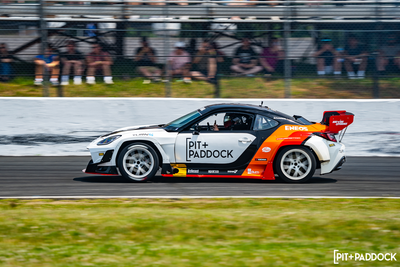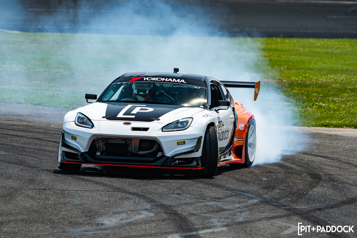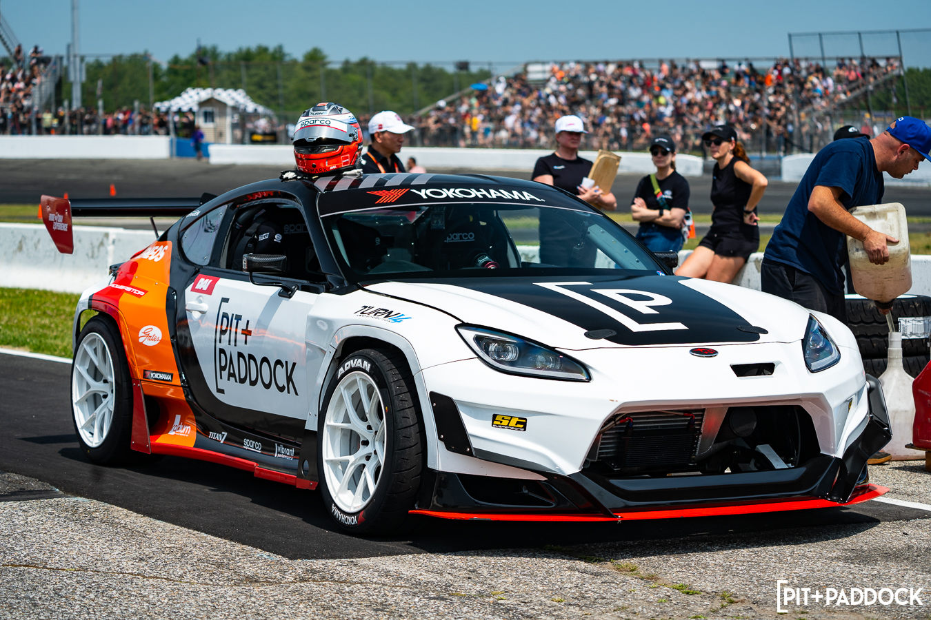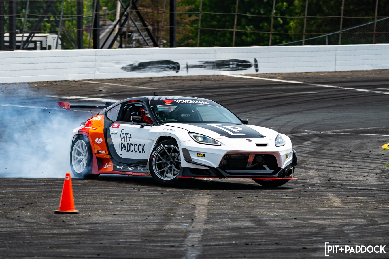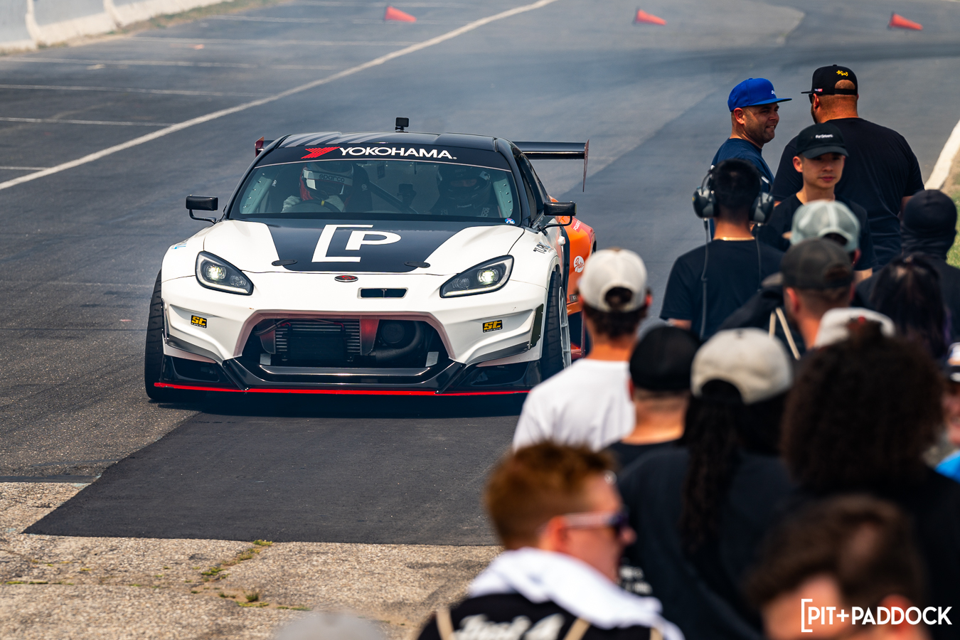 Now for those who are just joining us, Ride with Dai is a program we created last year to transform Dai’s Subaru BRZ Formula DRIFT car into a dedicated ride-along taxi for fans. You might be asking if there was anything done differently to repurpose the BRZ. The answer is “yes”, Dai made it more balanced and modified it to have more control over camber and alignment with a full tube front chassis and double a-arm suspension. A new 2022 exterior reskin and Pit+Paddock livery would be the icing on the cake to show that this BRZ is better than ever.