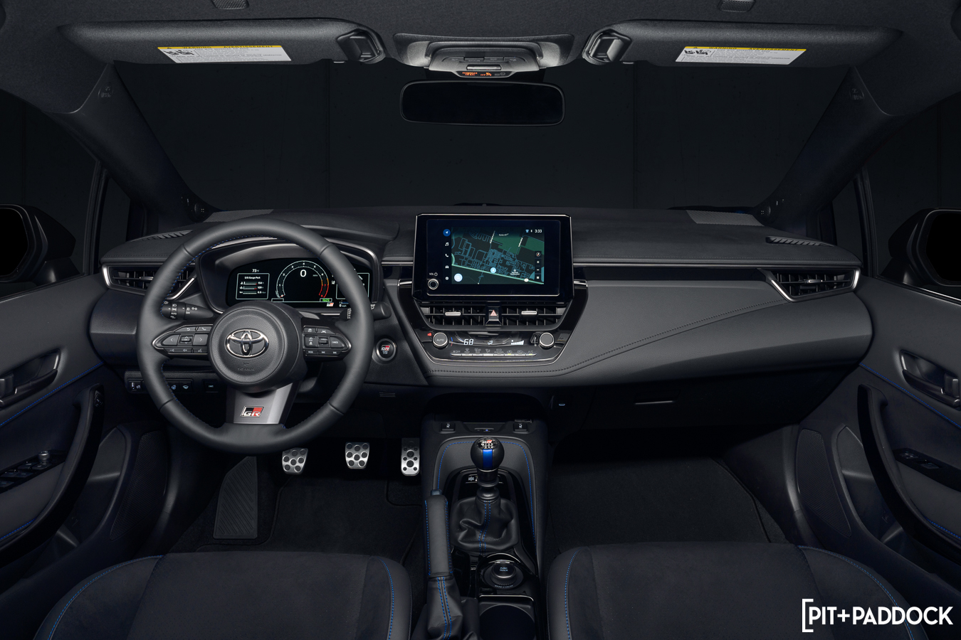 Toyota’s other upgrades on the 2024 Circuit model are for keen eyes only, but likely because some 2023 models are still in production. The Circuit model looks the part already, but the BBS wheels are a definite upgrade and the blue-stitched seats and door panels are a nice touch. I actually thought that the shift pattern inlay on the blue-striped shift knob was peeling when I first saw it, but it’s made of forged carbon. It might be a braggadocios talking point amongst youths, but that material always looks like a black car the day after a thunderstorm.