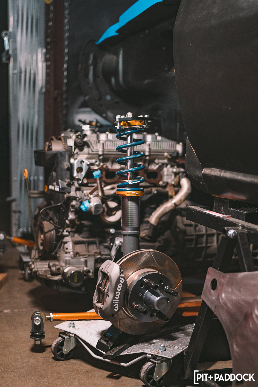 Since the project was very much a slow burn, it allowed Secret Factory to really dial in the car’s intent. Too often, projects like this start as ambitious “race cars”, but over time (and as we get older), the reality is that we enjoy 90% of our projects on civilian roads. As such, the Celica’s temperament shifted — polyurethane bushings were fitted to give the old chassis a bit more precision without the harshness of full solid inserts — and the power was upgraded to roughly 350whp to help it more than keep up with modern machinery. AE86 coilovers, tie rod ends, and front sway bar helped further dial in the driving experience. A Techno Toy Tuning x Wilwood brake kit (also from the AE86) equipped with Hawk Performance pads helps bring the car to a halt.