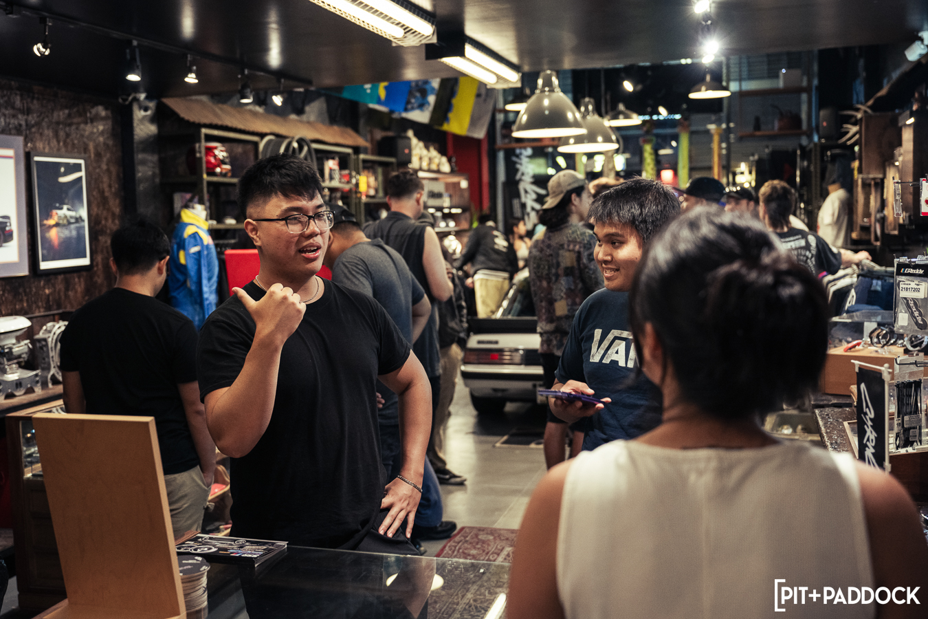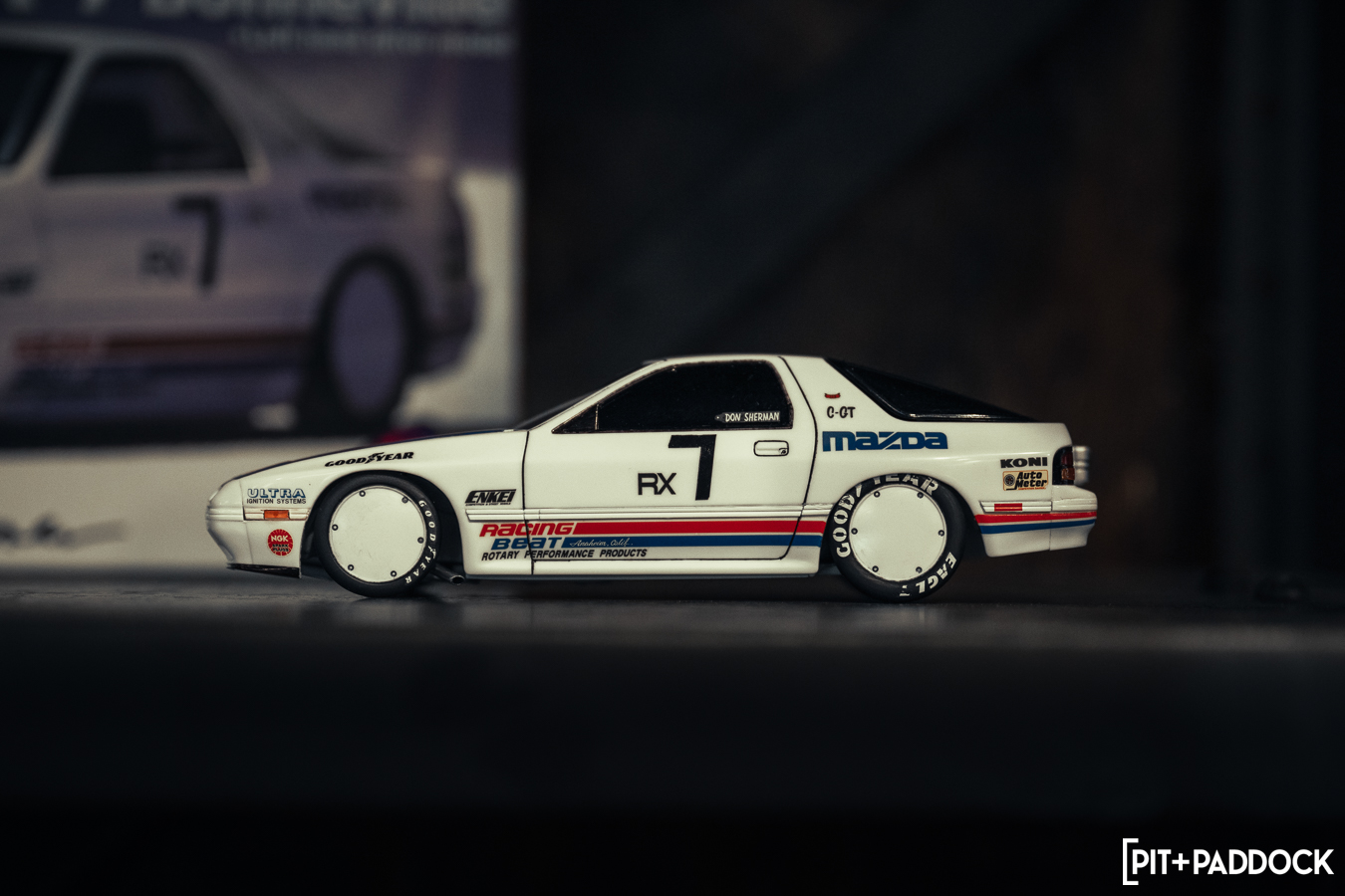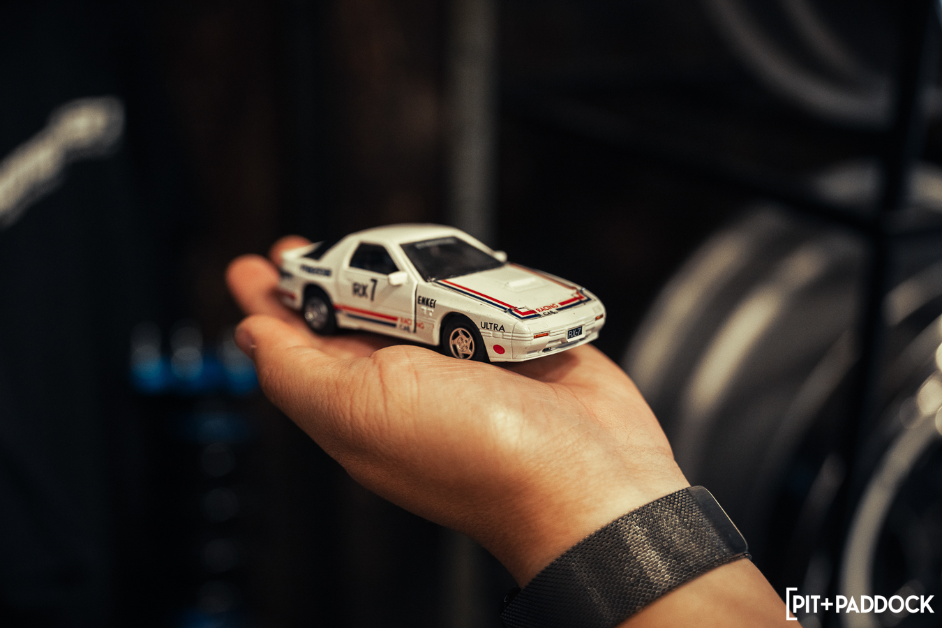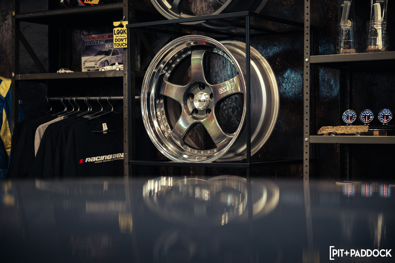 The obvious car for Bowls to shoehorn inside would’ve been the ever-so-popular FD RX-7; however, the narrow opening of the storefront’s doors limits what cars can actually fit. Hence, there was only one option: a first-generation SA22C or FB RX-7. Only sold for three years in the U.S., these cars are extremely rare to find, but luckily, Pit+Paddock’s very own Daryl Sampson is a longtime owner of a silver SA22C RX-7 that sits pretty on SSR MKIII wheels. It just so happened that the car was stored locally in Los Angeles.
