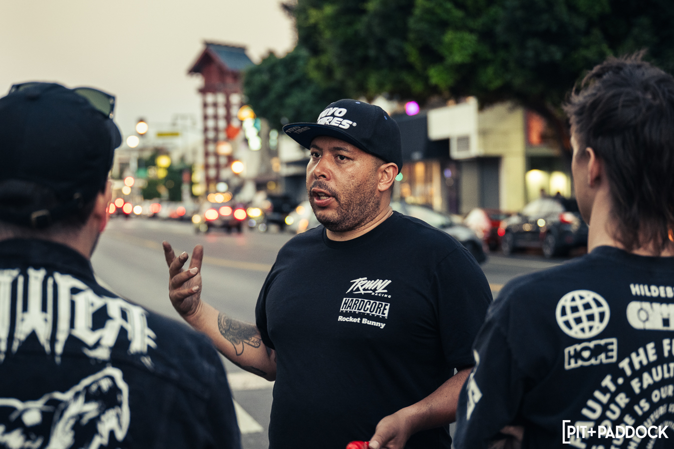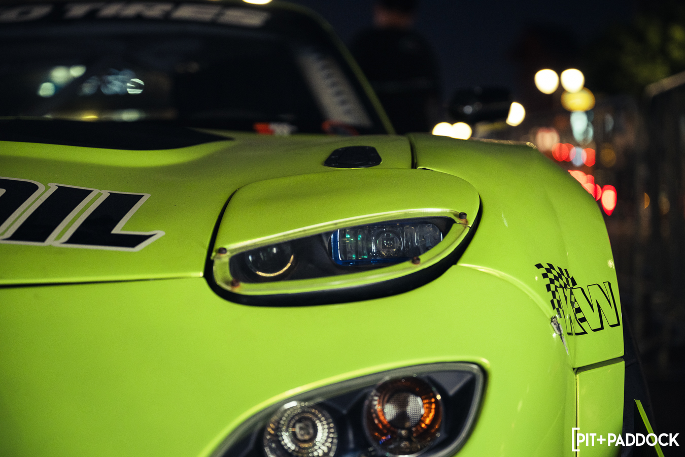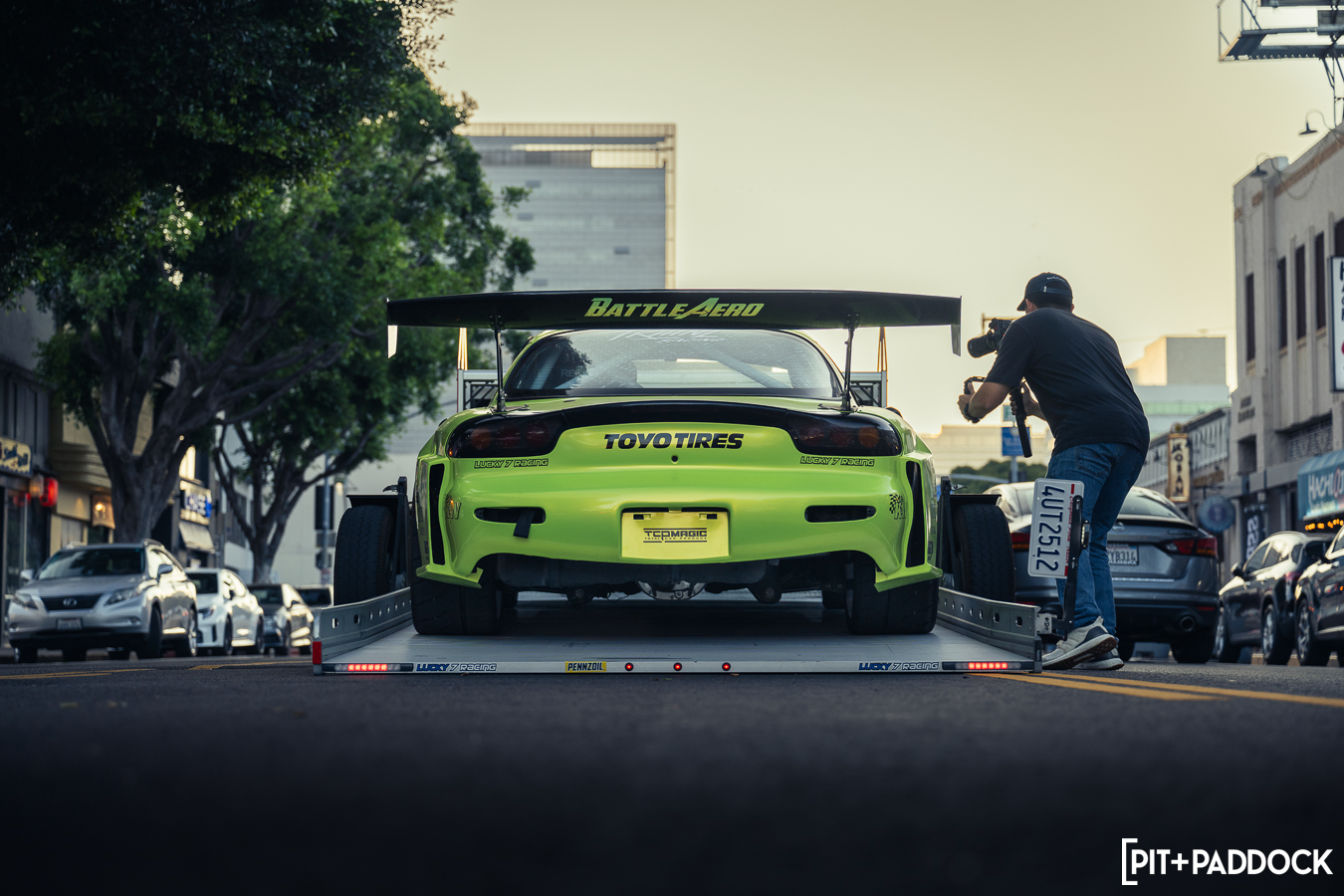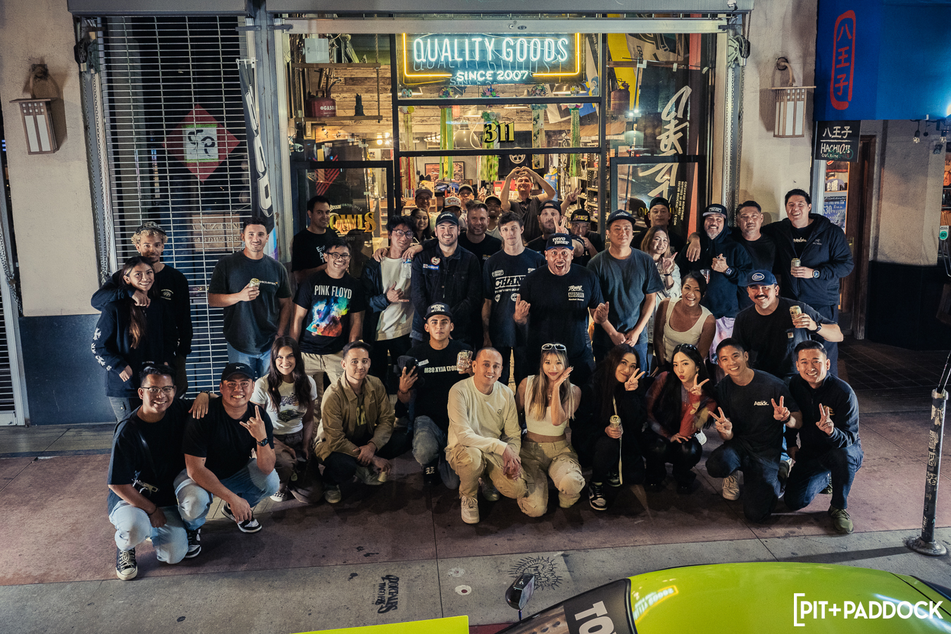 Once Daryl’s RX-7 was positioned into place, the sound of rotary engines echoed through Japantown as RX-7s and RX-8s cruised up and down 1st Avenue. Just outside Bowls, seven FD RX-7s secured primo parking spaces, which included a special appearance from Jonathan Grunwald. You’ll remember Jonny as his white TCP Magic widebody RX-7 was the very first Pit+Paddock poster giveaway two years ago. His other FD project car is this bright green one that summons 1,200hp and makes so much noise that it could easily deafen anyone who’s standing within a 30-foot radius. In addition to Jonny’s race car, Ilia Smolov of Final Bout stopped by with his Team Proceed drift car and a Fast & Furious replica car which couldn’t have looked more at home in downtown LA.