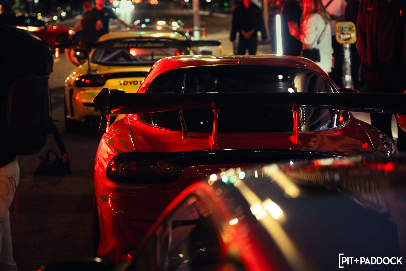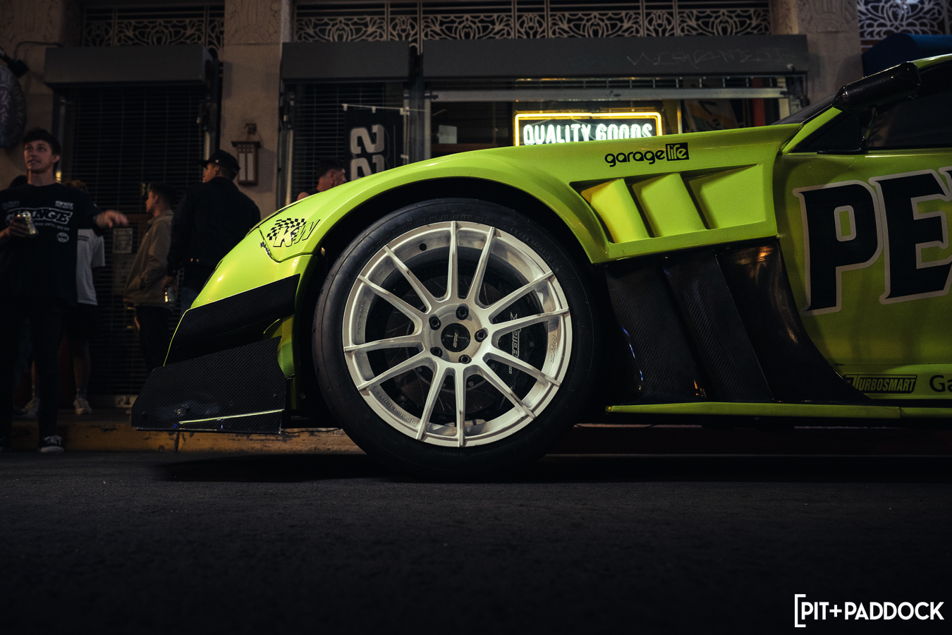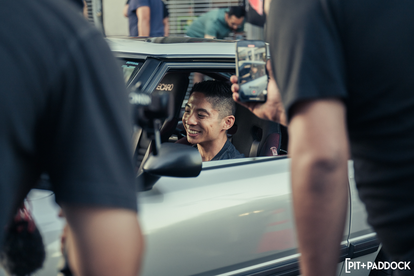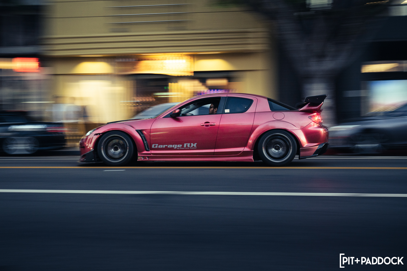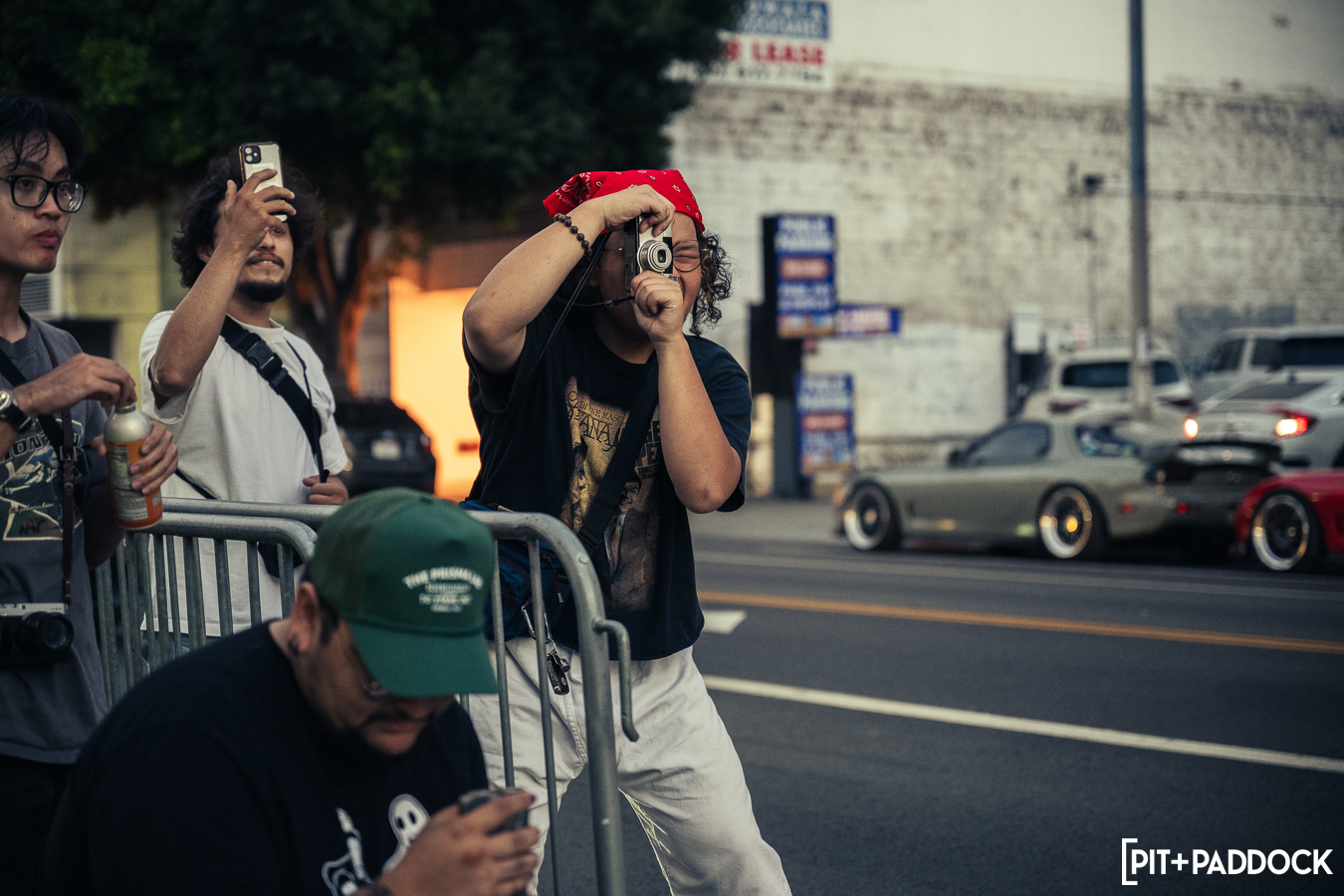 Once Daryl’s RX-7 was positioned into place, the sound of rotary engines echoed through Japantown as RX-7s and RX-8s cruised up and down 1st Avenue. Just outside Bowls, seven FD RX-7s secured primo parking spaces, which included a special appearance from Jonathan Grunwald. You’ll remember Jonny as his white TCP Magic widebody RX-7 was the very first Pit+Paddock poster giveaway two years ago. His other FD project car is this bright green one that summons 1,200hp and makes so much noise that it could easily deafen anyone who’s standing within a 30-foot radius. In addition to Jonny’s race car, Ilia Smolov of Final Bout stopped by with his Team Proceed drift car and a Fast & Furious replica car which couldn’t have looked more at home in downtown LA.