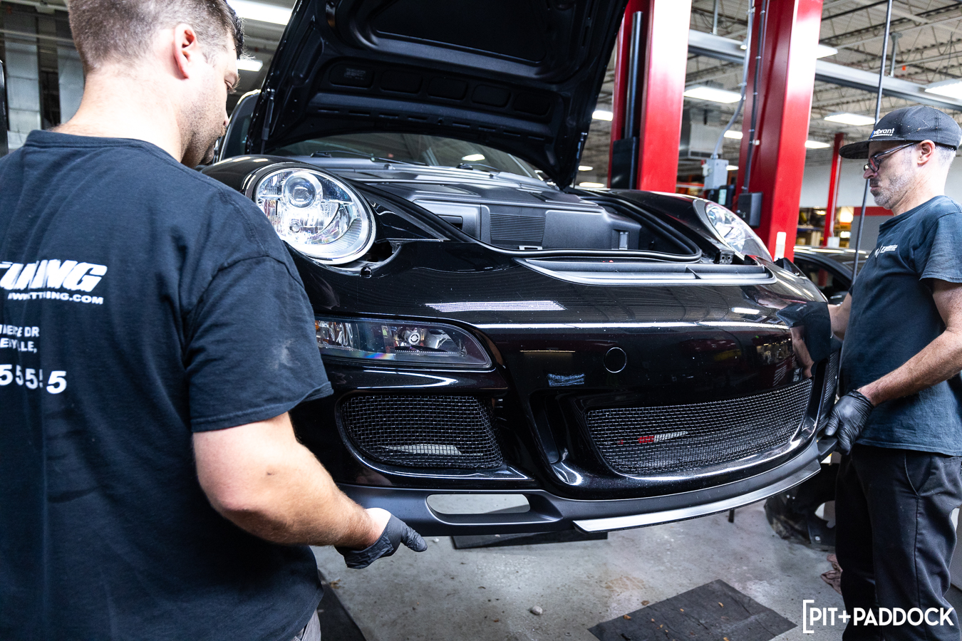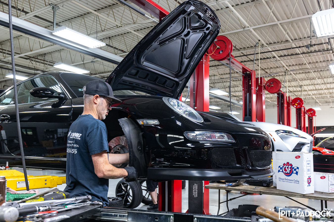 My reframed approach toward the “Porsche Moment” had two tangential benefits: patience and resolve. Together, that concoction reinforced an unwavering approach toward creating my ultimate GT3. This slow burn allowed me to be deliberate in my selections — like the Recaro Classic Pole Positions, 18″ Advan GT Premium wheels, Öhlins TTX coilovers, and Akrapovič Evolution titanium exhaust — but also the privilege to enjoy every improvement along the way. Today, that calculated approach brought me to CSF and our usual Montgomeryville, PA stomping grounds, R/T Tuning.