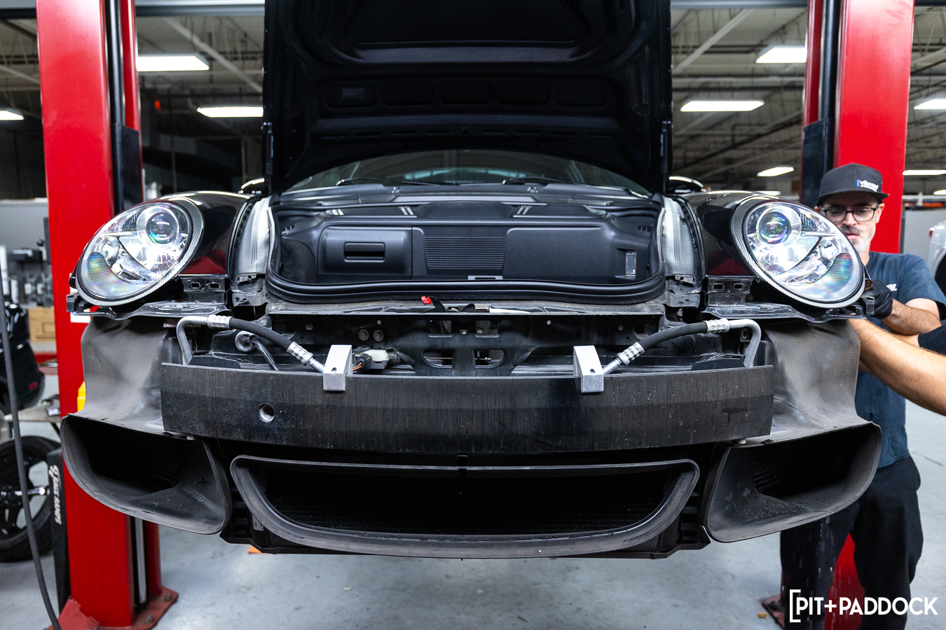 For any Porsche install, the biggest challenge is access. But I’m happy to report that all three heat exchangers have a pretty clear line of sight once the bumper is off and each fender liner is removed. We recommend starting with the driver’s side because there’s more room inside the wheel well (more on this later).