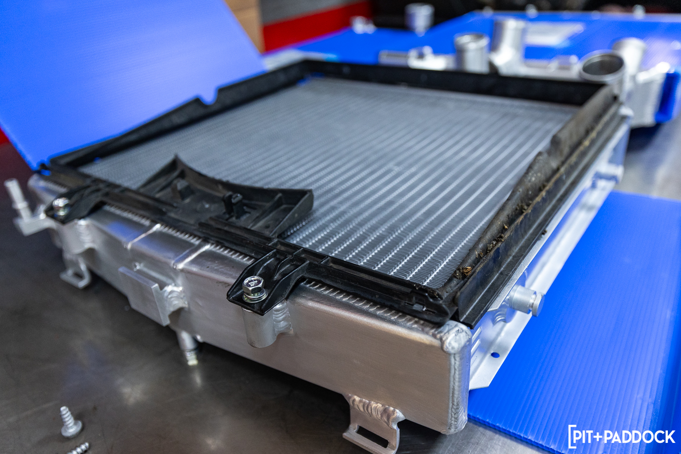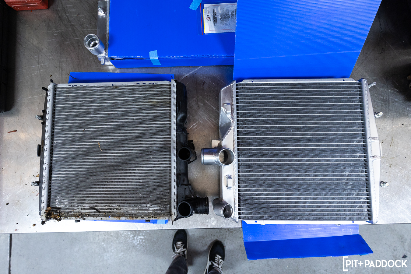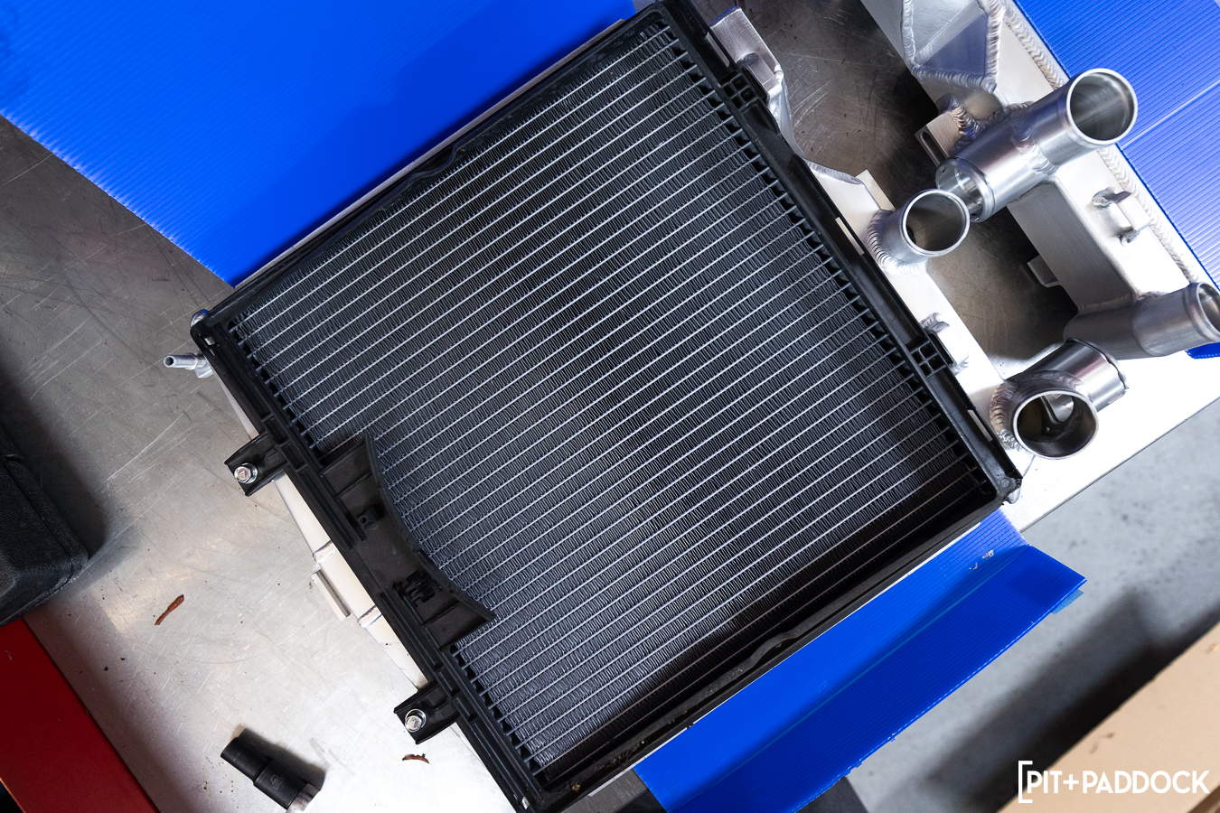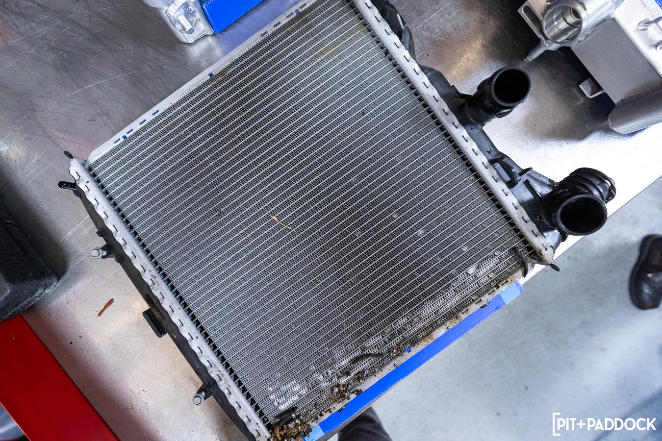 While the side radiators have AC condensers to hide behind, the center unit is front and center to any incoming road debris. As such, the factory center radiator clearly took the most punishment — even with radiator protection screens fitted — and was yearning to be replaced. The CSF center radiator follows suit to its counterparts, including aircraft-grade aluminum construction, B-Tube technology, plug-and-play fitment, and the important benefit of increased durability versus the stock unit.