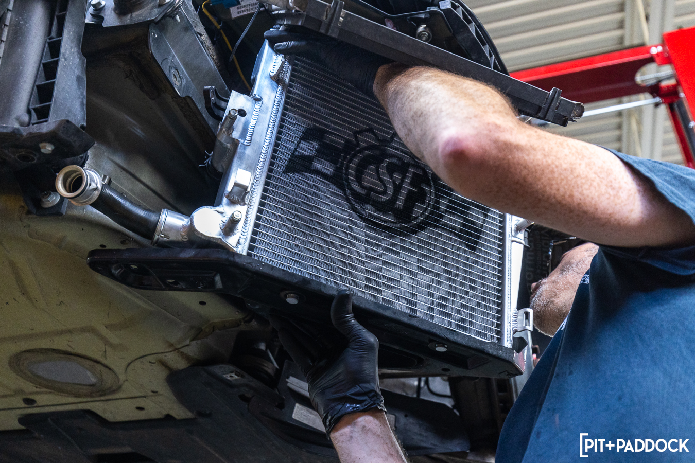 Despite the additional accessories, the CSF passenger side radiator fits back into place without any issues and, just like the driver’s side, the new radiator accepts all of the OEM bits perfectly.