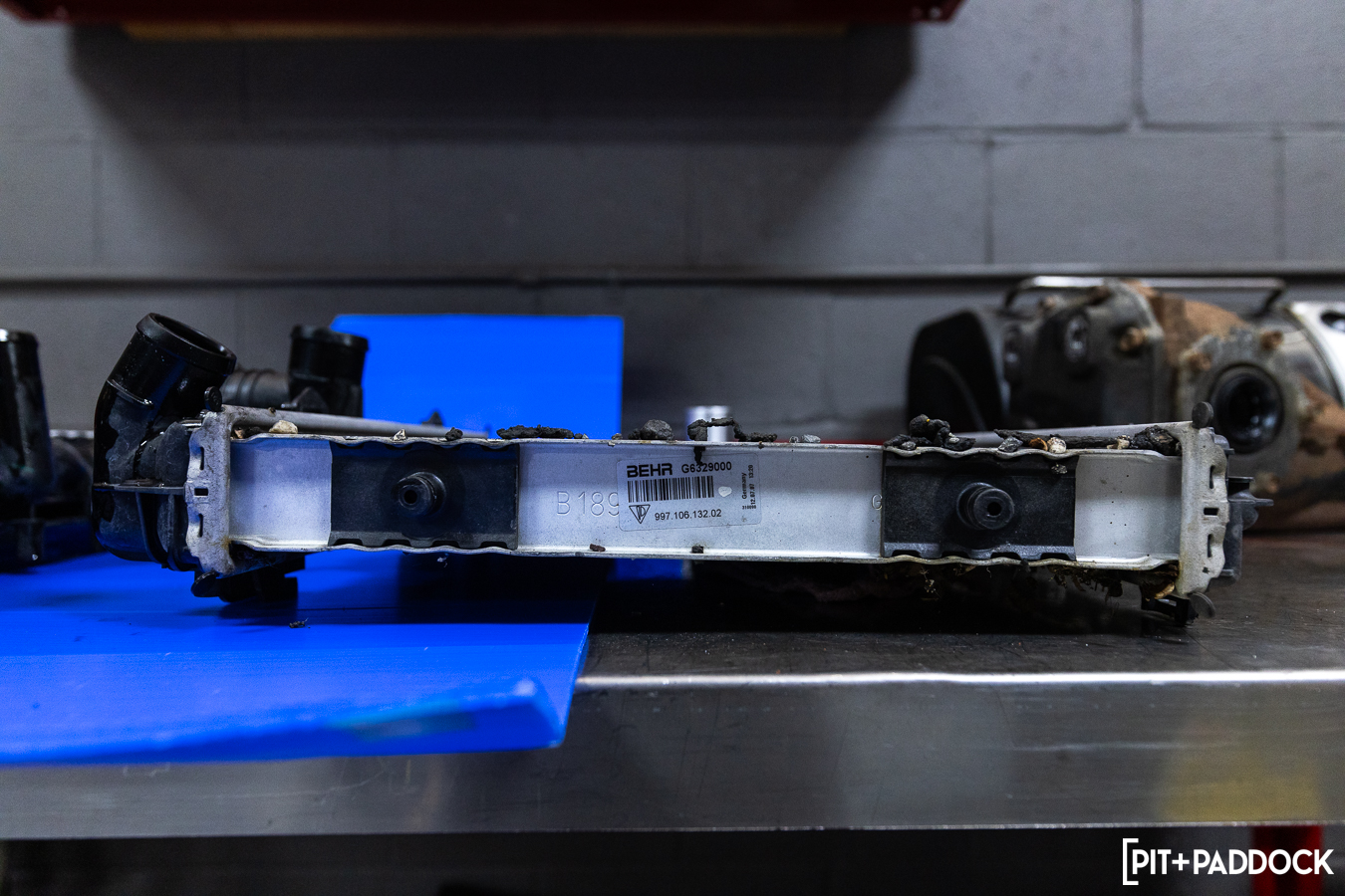 Unlike its standard Carrera siblings (with manual transmissions), the 997 GT3 utilizes three radiators — two side and one center — to maximize cooling opportunities to its rear-engined layout. The left (7047) and right (7048) radiators are effectively mirrored units that are shared across the 997/987 naturally-aspirated lineup, while the center radiator (7053) is only cross-compatible with the GT2 and GT2RS.