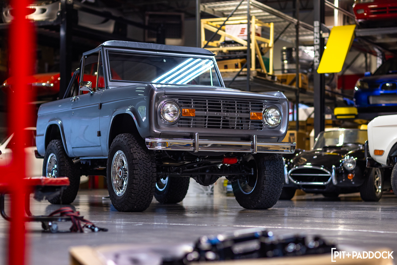One very admirable thing about R/T Tuning is its range. This certainly isn’t the first time you’ve heard Pit+Paddock talk about this Montgomeryville shop — it’s been our home for nearly every tech piece over the last three years — and this Bronco is just the latest example of its diverse portfolio outside JDM performance platforms. “We’ve serviced and modified a TON of cars,” Erik Wilson recalls. “R/T Tuning has been home to a number of EJ25-powered dune buggies, an Ultima GTR, a K-swapped Porsche 911, a real deal Shelby Cobra, old open-wheeled Lotus race cars, a Land Rover Defender 90, and so much more.”