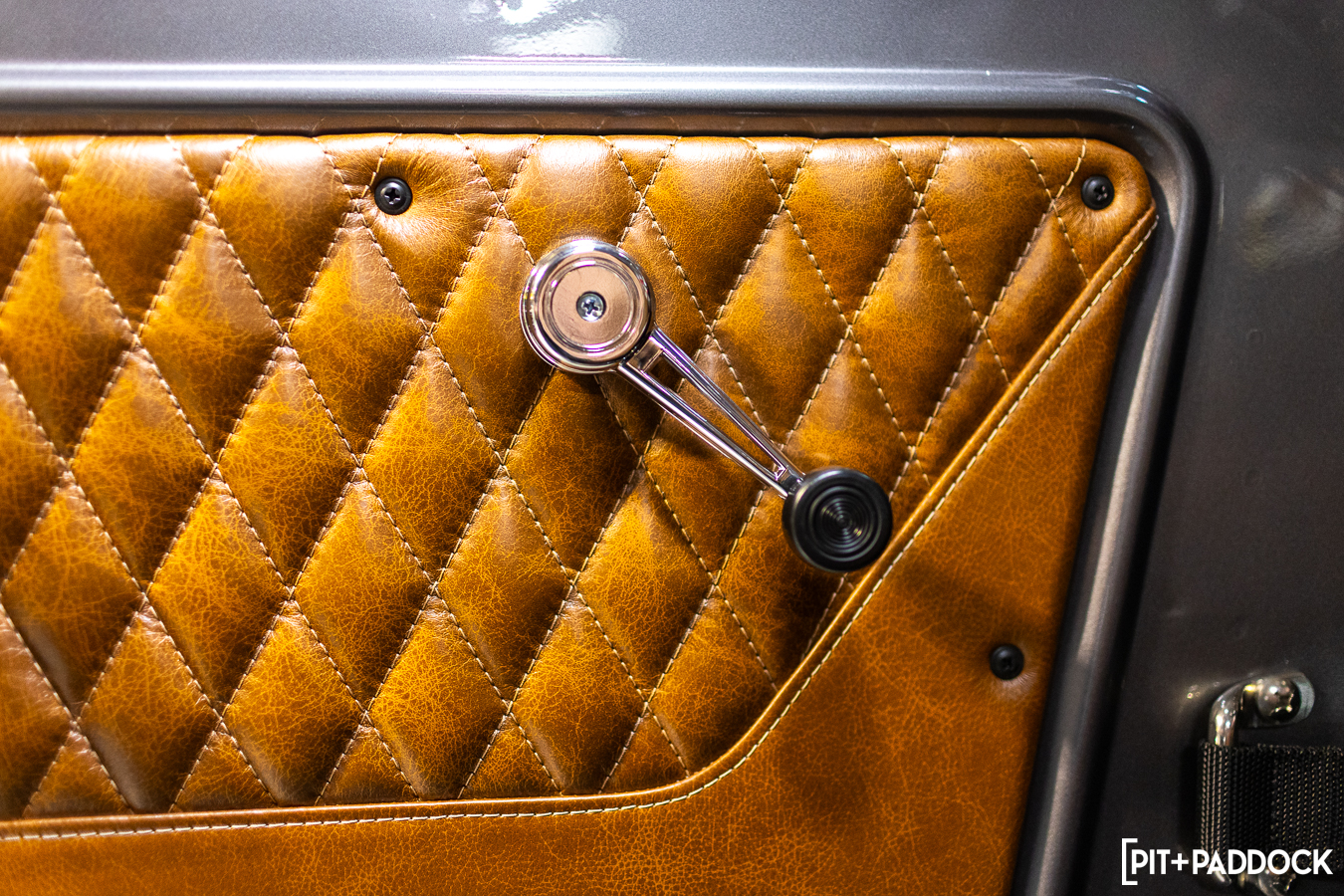We briefly mentioned the interior before, but we’d be amiss if we didn’t go into more detail. The front seats, rear bench, and door cards were sent out to Gritwell Upholstery for full refurbishment. Each seat was taken down to the bare frame to reshape and reskin using high-end Relicate leather. The door cards were re-done in an identical pattern to keep everything consistent inside.