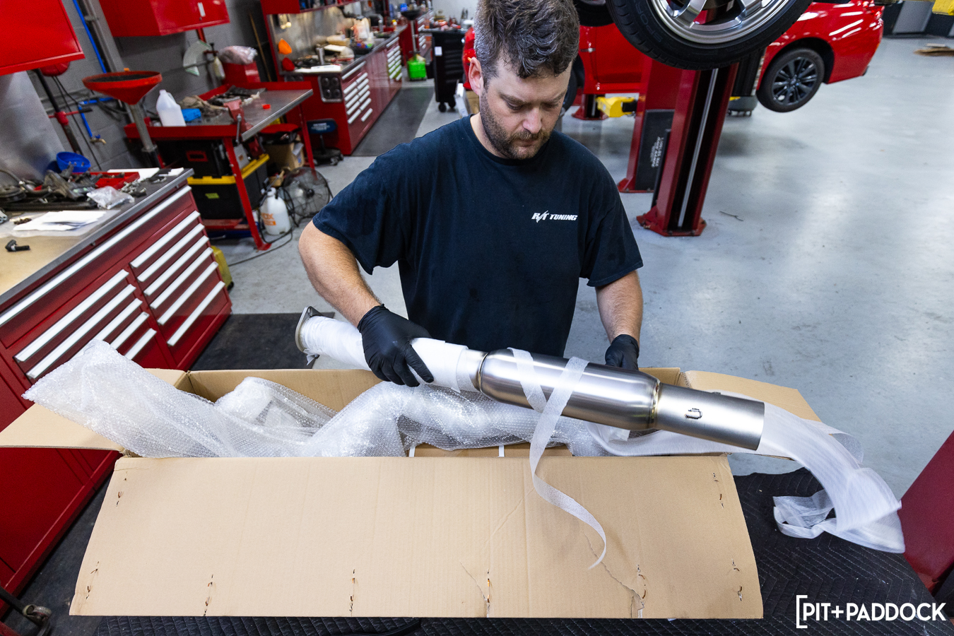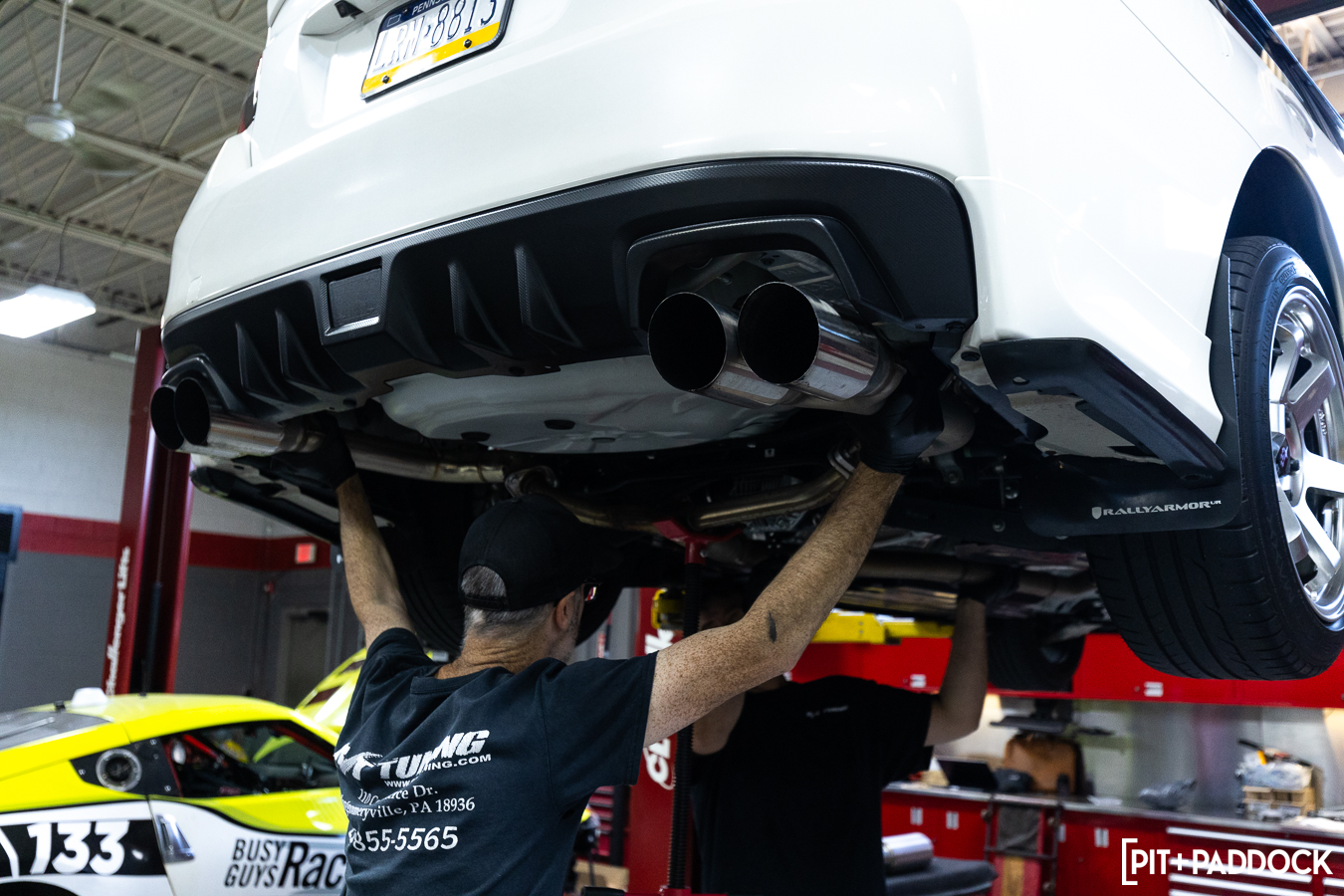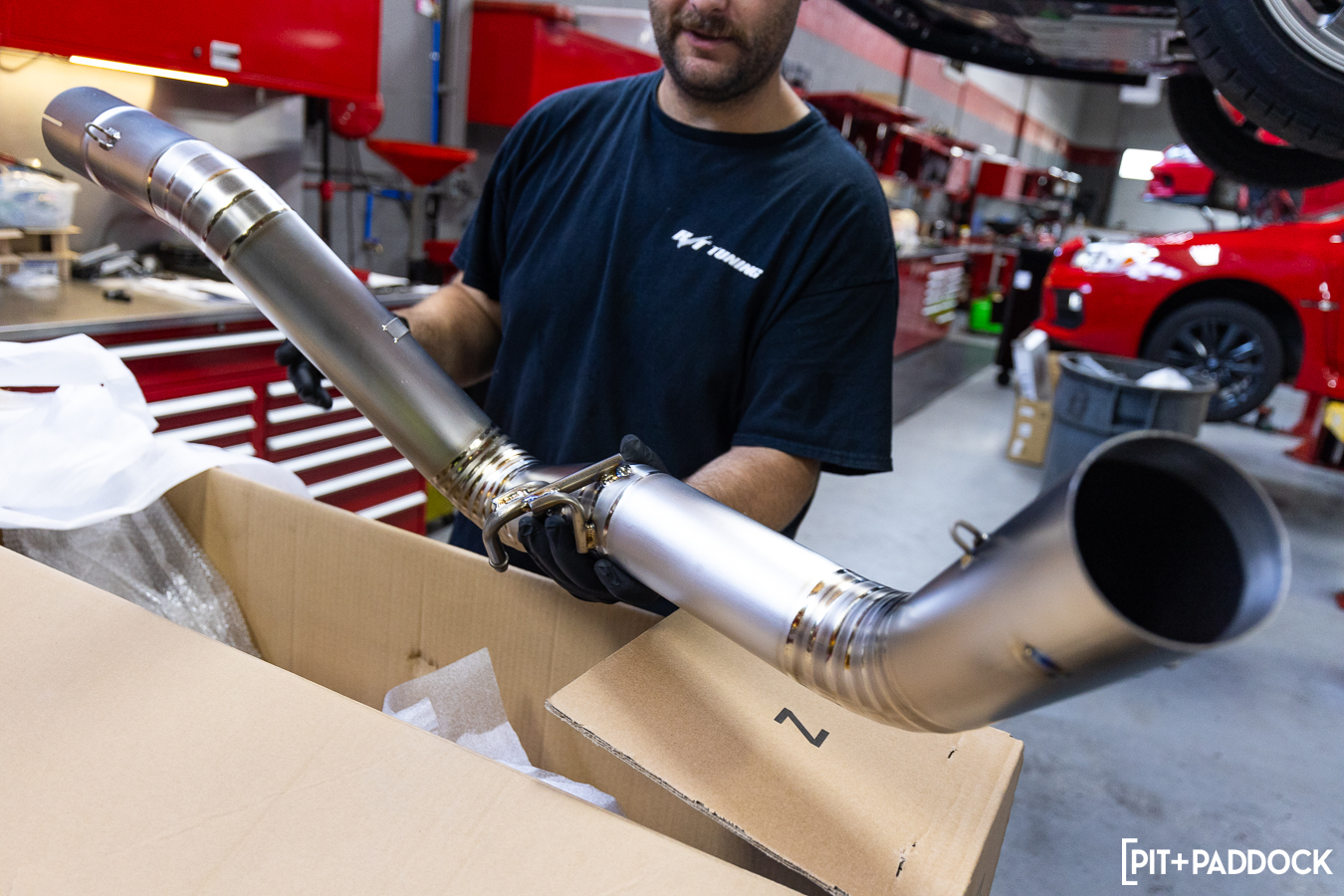 As you’d expect, we did this properly and set up shop at our favorite Montgomeryville, PA destination, R/T Tuning. Exhaust installations are pretty straightforward, and even with the unique routing, this Revel exhaust is no exception. First, the stock (or other aftermarket) system needs to come off. From here, it’s just a matter of working front to back; the resonated front pipe bolts right up to the catalytic converter using the factory hardware.