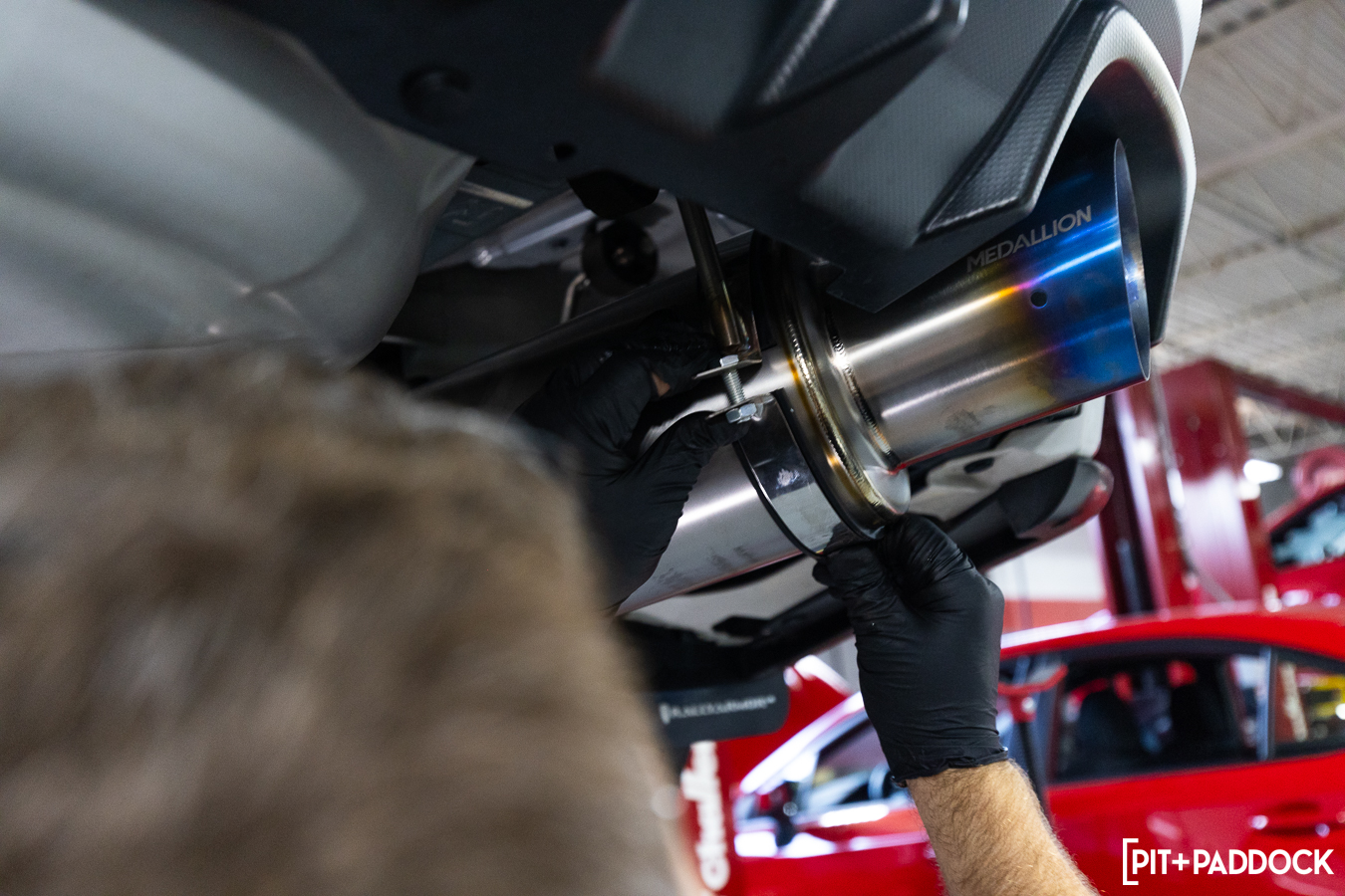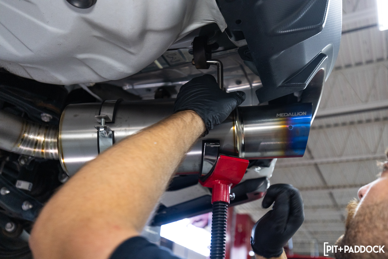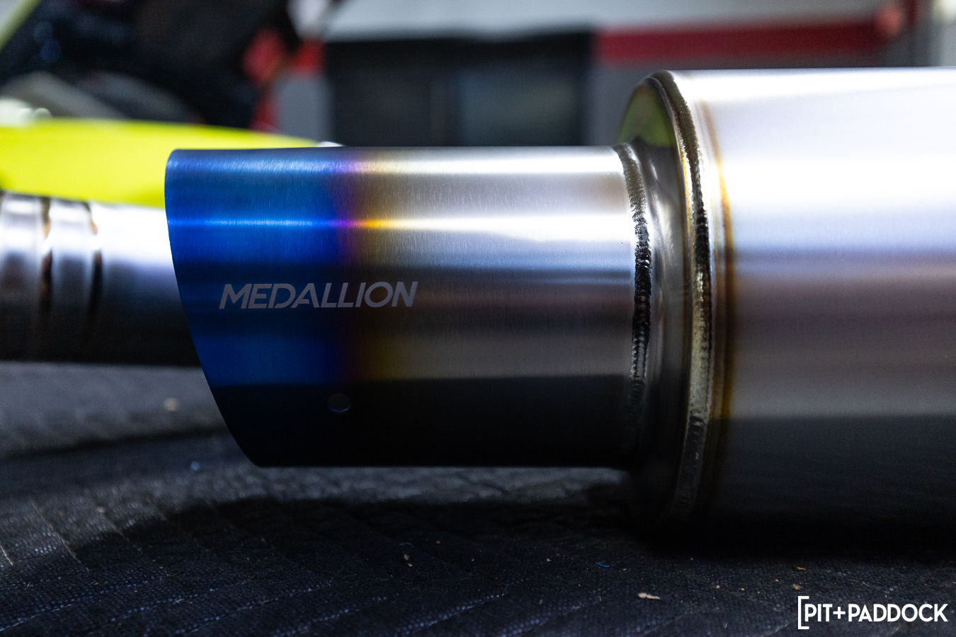 The burnt tip, laser-engraved with the Medallion name, measures 4.5” for maximum visual impact. Astute observers will notice that the exhaust routes out the passenger side diffuser exit — a marked difference from other aftermarket offerings — and immediately sets you apart from the sea of other commonplace exhausts on the market.
