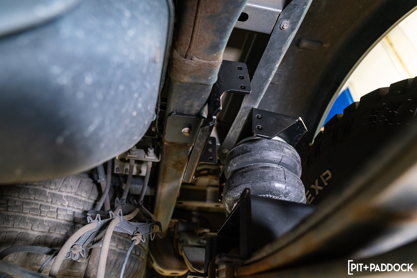 My crash course in off-road air suspension continued and I learned that there are two types of Firestone Ride-Rite air helper springs: single and dual-leveling. As a tethered setup, a single-leveling system puts equal air pressure into each side. By contrast, the dual-leveling system runs separate air lines to each bag. As a result, each air helper spring works independently, allowing side-to-side or front-to-back leveling as required for your usage case.