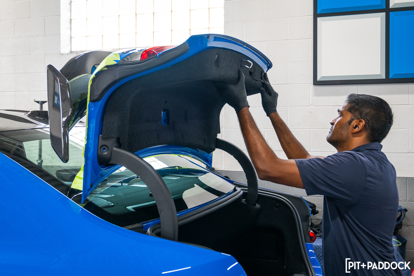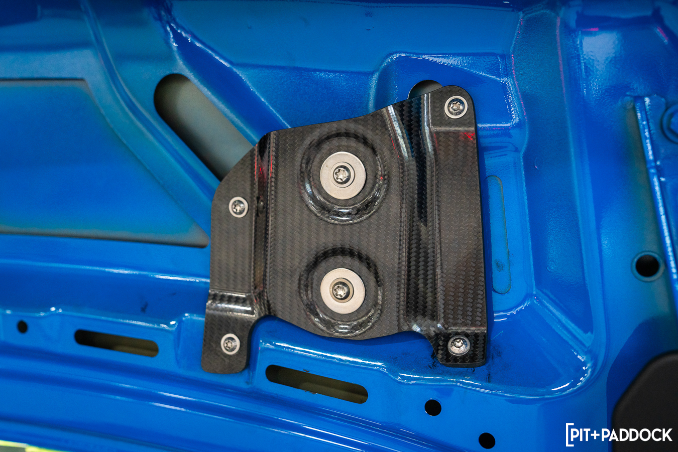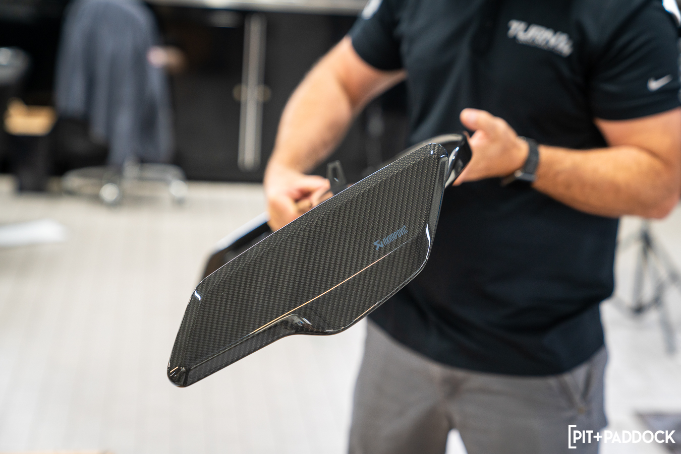 The Akrapovič carbon fiber mounting brackets were crucial to ensure the trunk panel had adequate support to cope with the amount of force exerted on the wing. It’s almost a shame that they are hidden away behind the trunk’s beauty panel because they are beautifully engineered pieces.