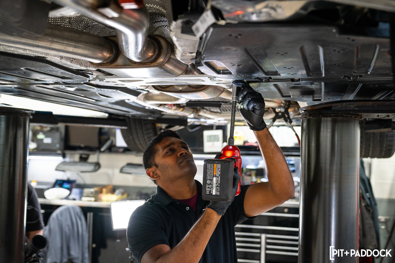 Rear Wing: Admittedly, we took our time with the rear wing. It was the first one in North America and we knew we had one shot to drill the trunk correctly, or else we’d set the build back substantially. Fortunately, we had the capable hands of Thompson BMW at our disposal. I backed away to let Eric and Mikey, our Thompson BMW tech, do all the hard work.