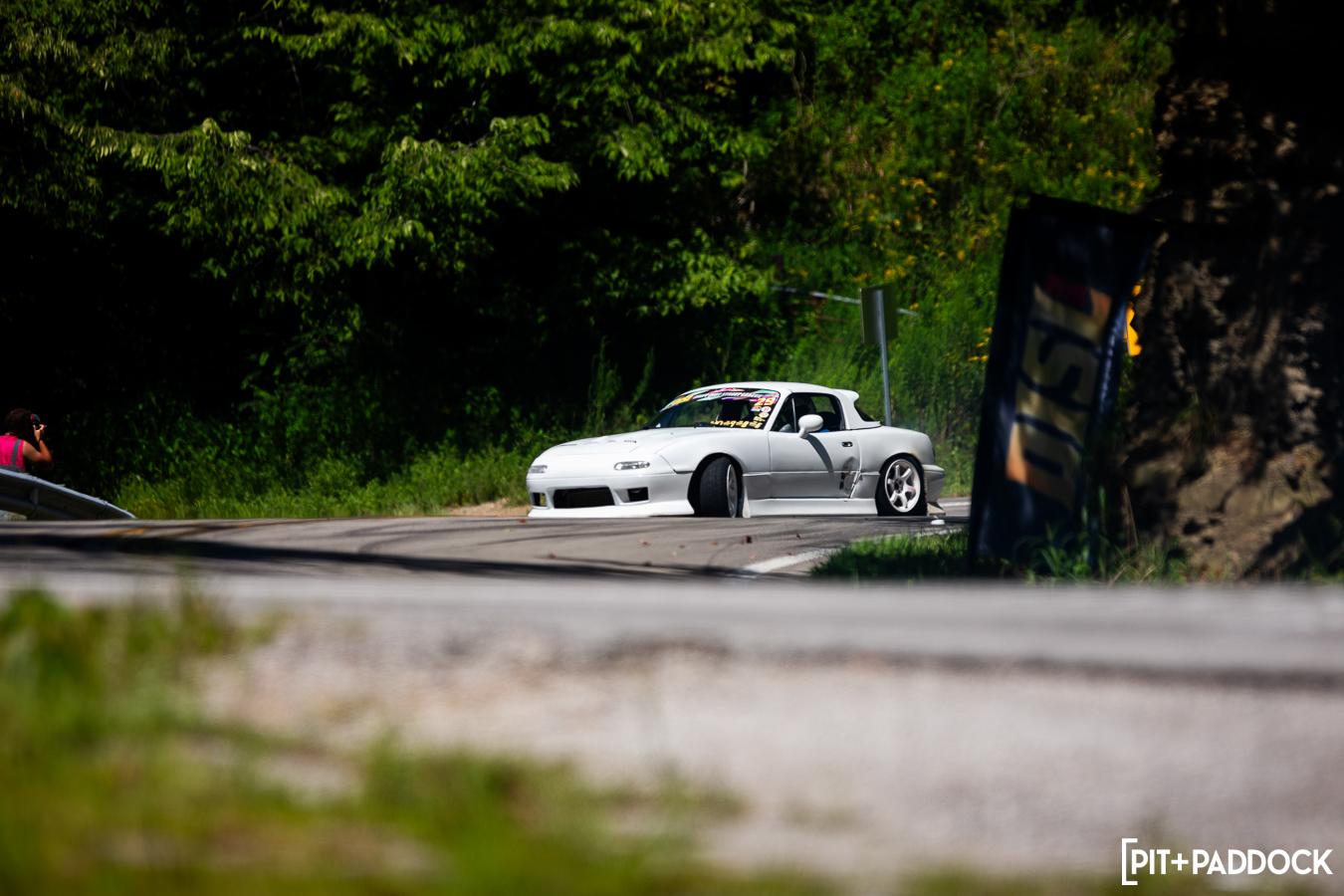 En route to the Media parking area, he hit a particularly interesting stretch of backroad that made him second guess his 50mph speed. It was downhill, fast, and technical. On one side were cliff walls and on the other, were guardrails protecting motorists from a potentially deadly drop. “I inquired which way and how far the circuit was from where we were parked,” said Sillars. “He paused and smiled and pointed to where I had just come from, Iff you came from that direction, you just drove through it’.” It was at that moment the enormity of the situation became apparent for Brad — this was a public highway road in Jackson County, KY with very little room for error — and Drift Appalachia was going to shut it down to drift it.