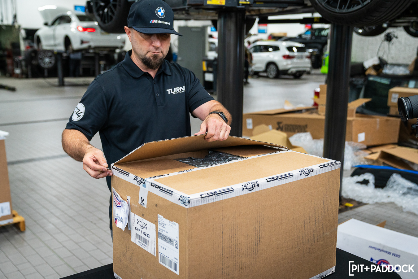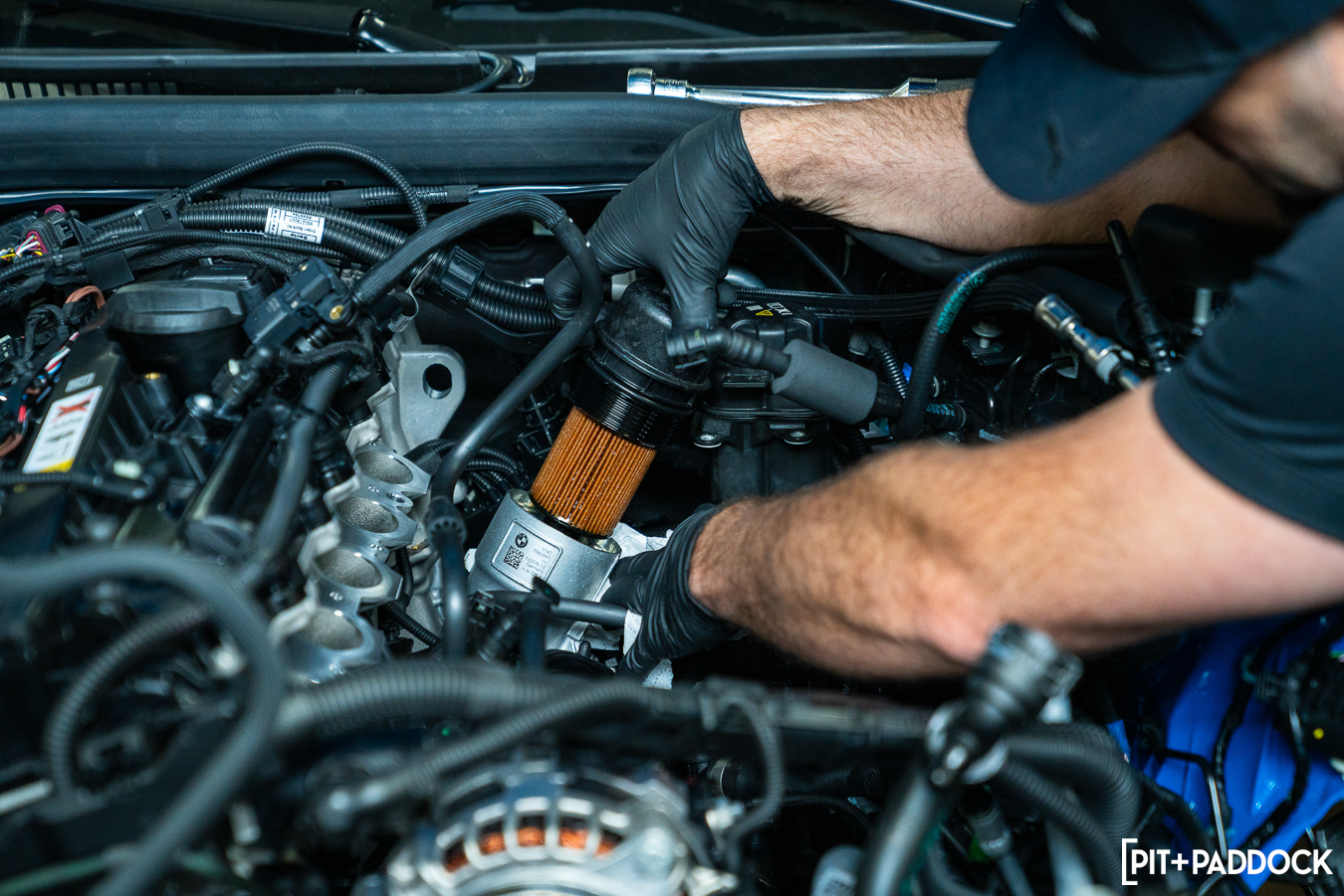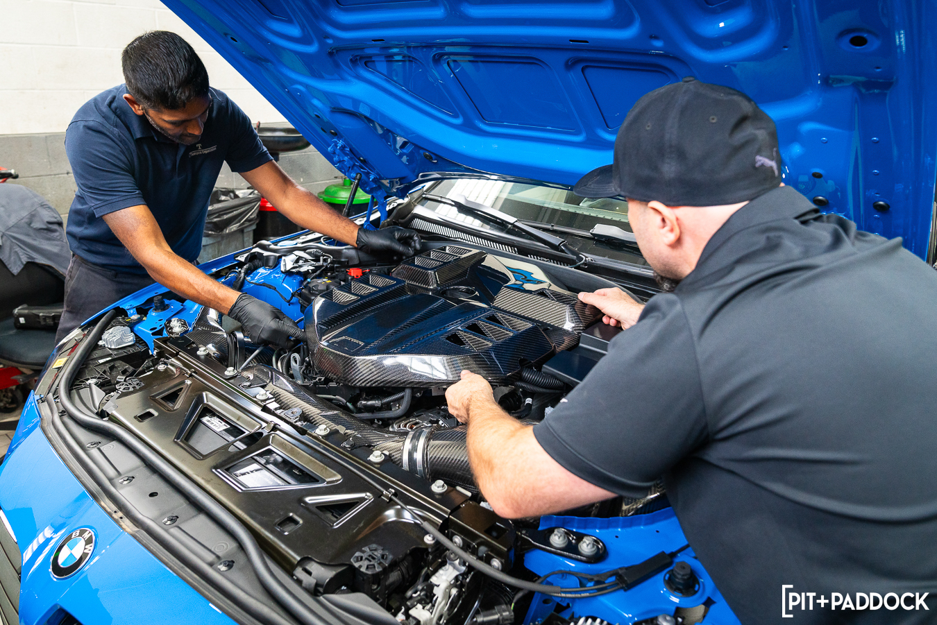 The effort required to complete this upgrade package was minimal, despite its massive benefit. Everything was advertised as plug-and-play and went in as such, which is a huge testament to each of the brands’ commitments to quality. Having Mikey, our Thompson BMW tech, take us from start to finish was a huge help as always — he had the front bumper off and all of the stock components out of the engine bay before Eric and I could unbox the parts. I was a bit unsure whether the Eventuri carbon fiber engine cover would fit over the CSF charge-air cooler manifold, but there was, again, no drama.