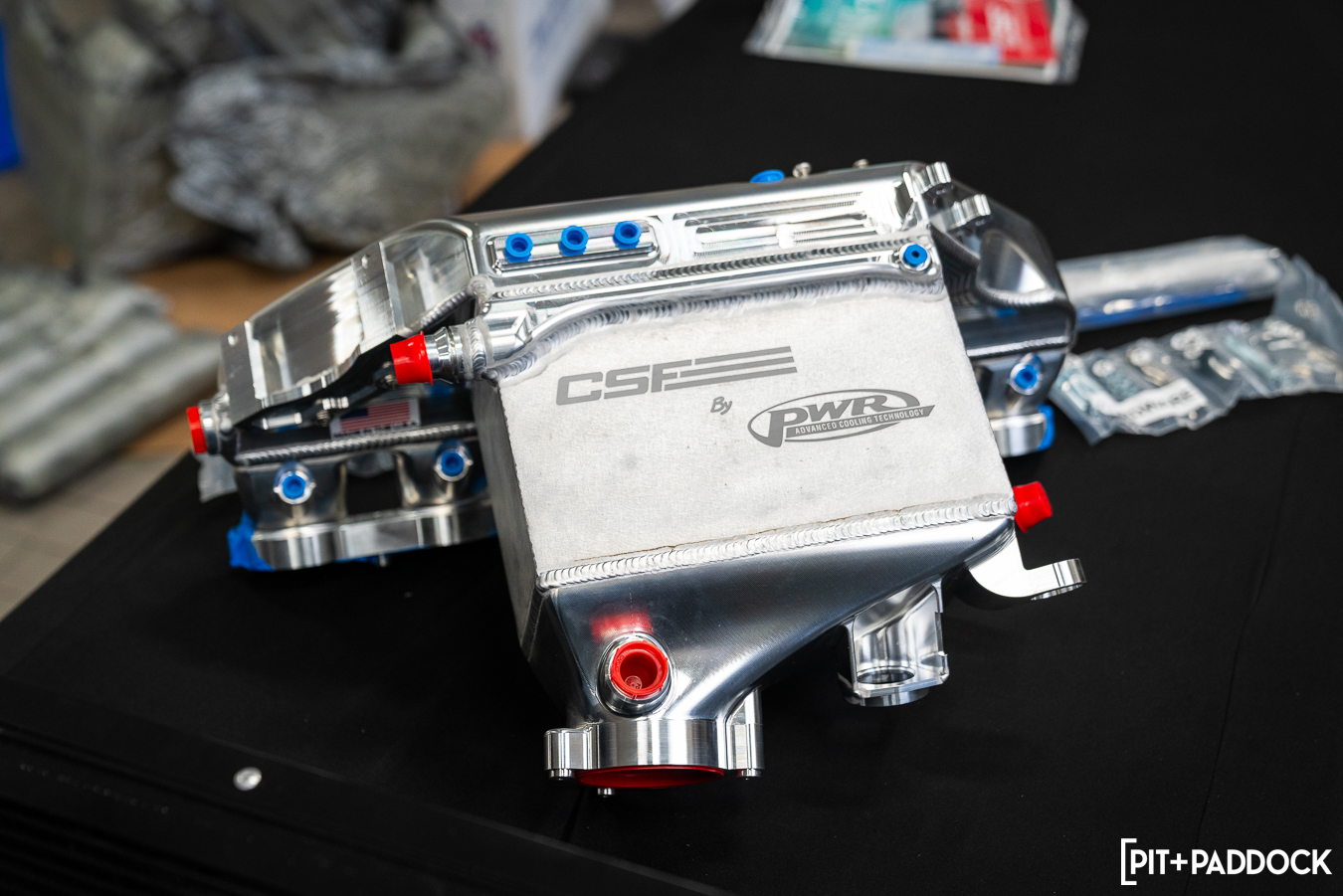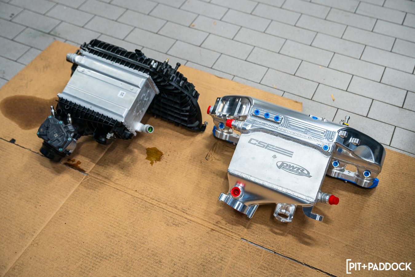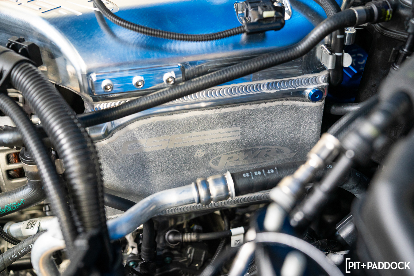 CSF’s party piece is its “level-up” charge-air cooler manifold (8233). Bar none, this S58 manifold is the company’s new “halo” product and boasts hundreds of hours of valuable R&D and testing between CSF and PWR, its strategic tier-1 motorsport cooling partner. The CNC billet aluminum manifold has been CFD analyzed to validate air flow and performance characteristics, which are far superior to the OEM unit. Robust would be an understatement; it’s been pressure tested up to 120psi and can accept port injection too, if you are keen to explore the upper stratosphere of horsepower.
