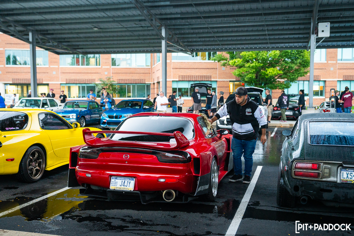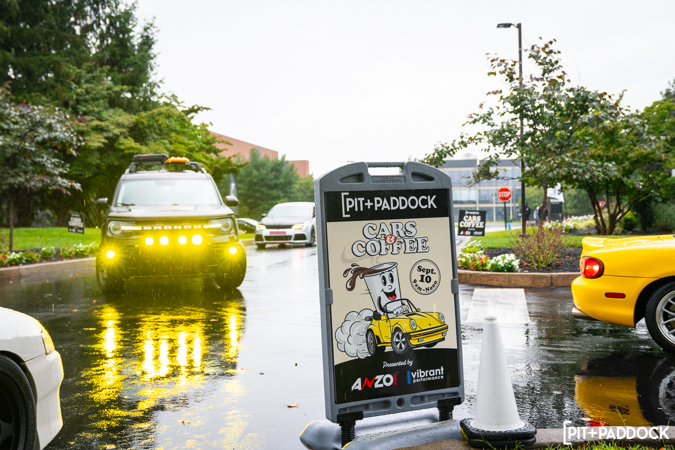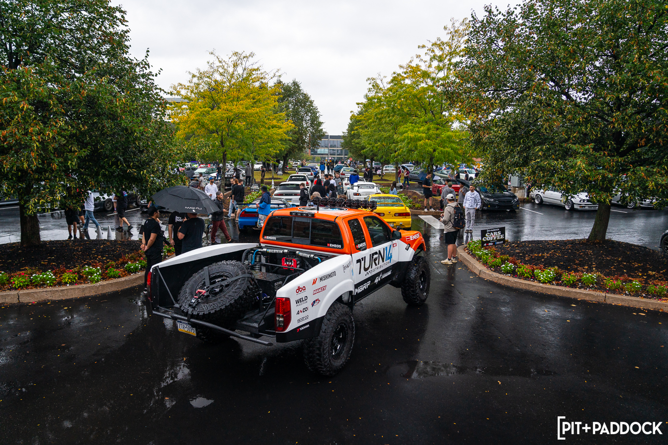 “Rain or shine.” That should honestly be the motto for Pit+Paddock’s Cars+Coffee events since more than half of them have been wet. What’s impressive though is that you can either count on a record-breaking turnout if it’s sunny (which is what happened this past April); or when it rains, you’ll still see one of the baddest lineups of cool cars (like last year’s season opener). Inclement weather is customary for residents who live here in the Northeast, but something unheard of in California (where I spend most of my time). If there’s an outdoor SoCal event with even a chance of a sprinkle, you can bet postponements or cancellations are in order. Here in Pennsylvania, you can forget about all that nonsense. You pack an umbrella and continue to enjoy the local car culture, which is what Cars+Coffee is all about.