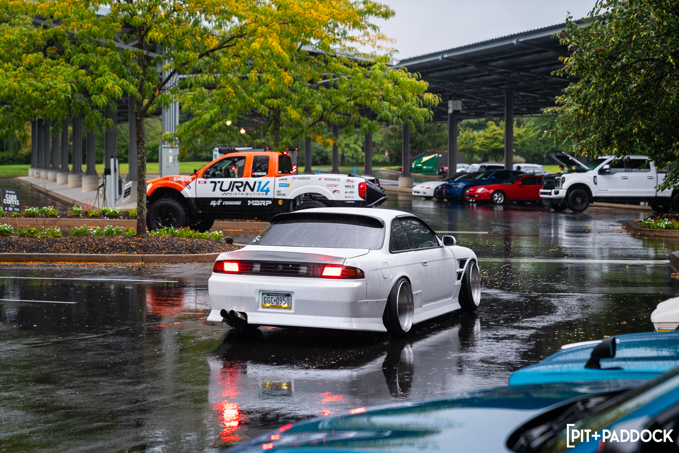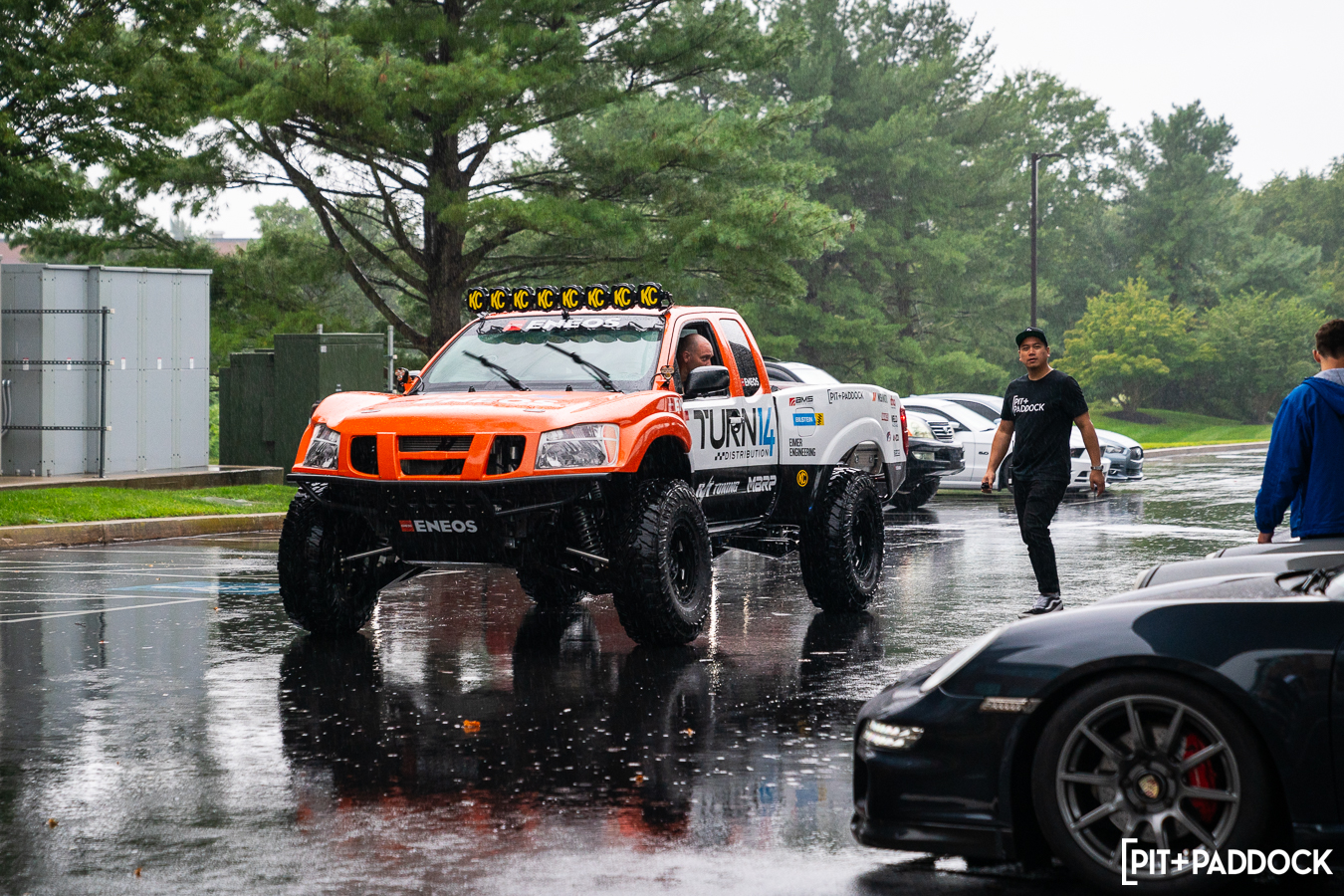 It wasn’t all just sweet Japanese cars though. With the rain dripping down, many attendees brought out their all-weather rigs. Parked front and center was the first East Coast appearance of the Turn 14 Distribution x MBRP x ENEOS Nissan Frontier. After debuting at the 2022 SEMA Show and completing a successful shakedown at King of the Hammers with Dai Yoshihara, it was finally shipped back to its maker, R/T Tuning, where it will be undergoing further development. Checking out the Baja-ready and VR30-swapped truck in front of the T14 headquarters was a sight worth seeing.