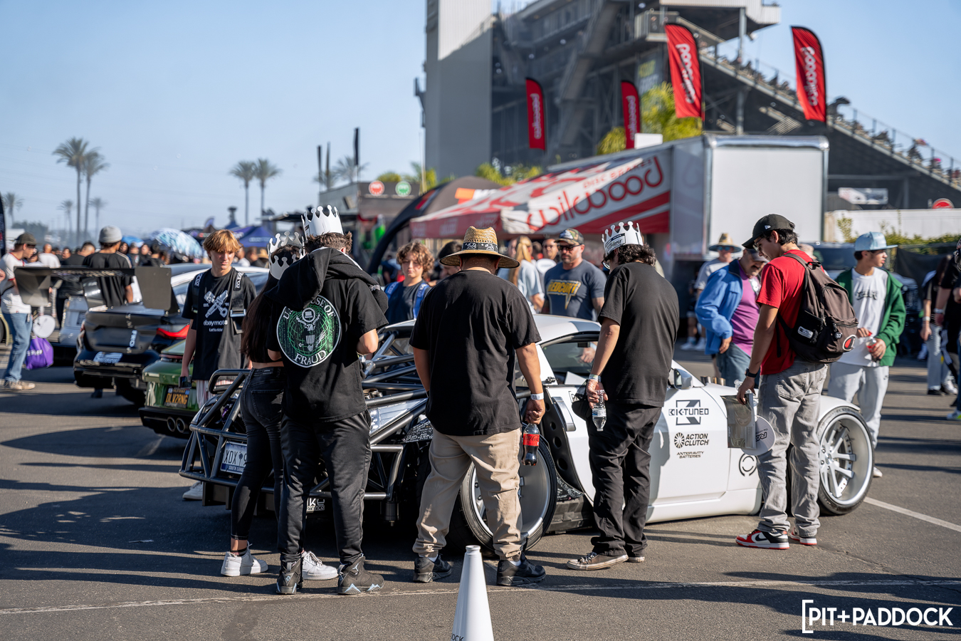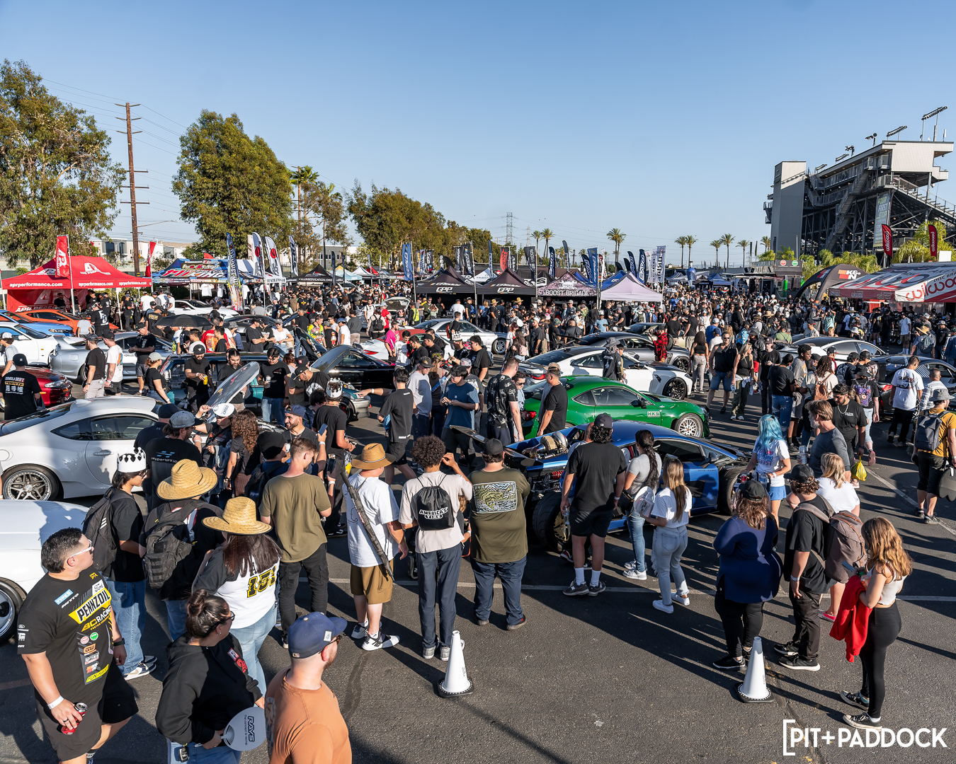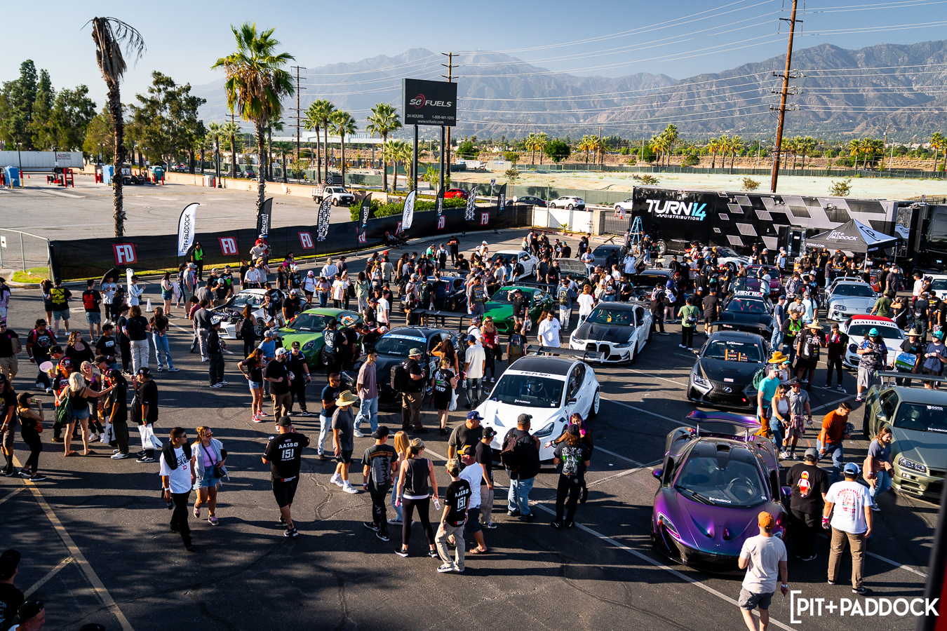 In Southern California, it rains around 30 days a year on average. We’re spoiled here with warm weather and constant sunshine on the regular, which is why there are so many car events that fill up our weekends year-round. However, when the clouds do come in and the water begins to sprinkle, our first instinct is to postpone or cancel events because we know that most people won’t dare drive their project cars in the rain. This was the case for Pit+Paddock’s Performance Car Invitational last year as severe weather conditions at Irwindale Speedway resulted in some no-show cars and a smaller attendance than expected. With this still in our mind, we knew 2023 would be our redemption year as there was nothing but blue skies and 80-degree temps in the forecast. The second annual Pit+Paddock Performance Car Invitational at Formula DRIFT Irwindale presented by Vibrant Performance was destined to be a banger, and sure enough, it delivered!