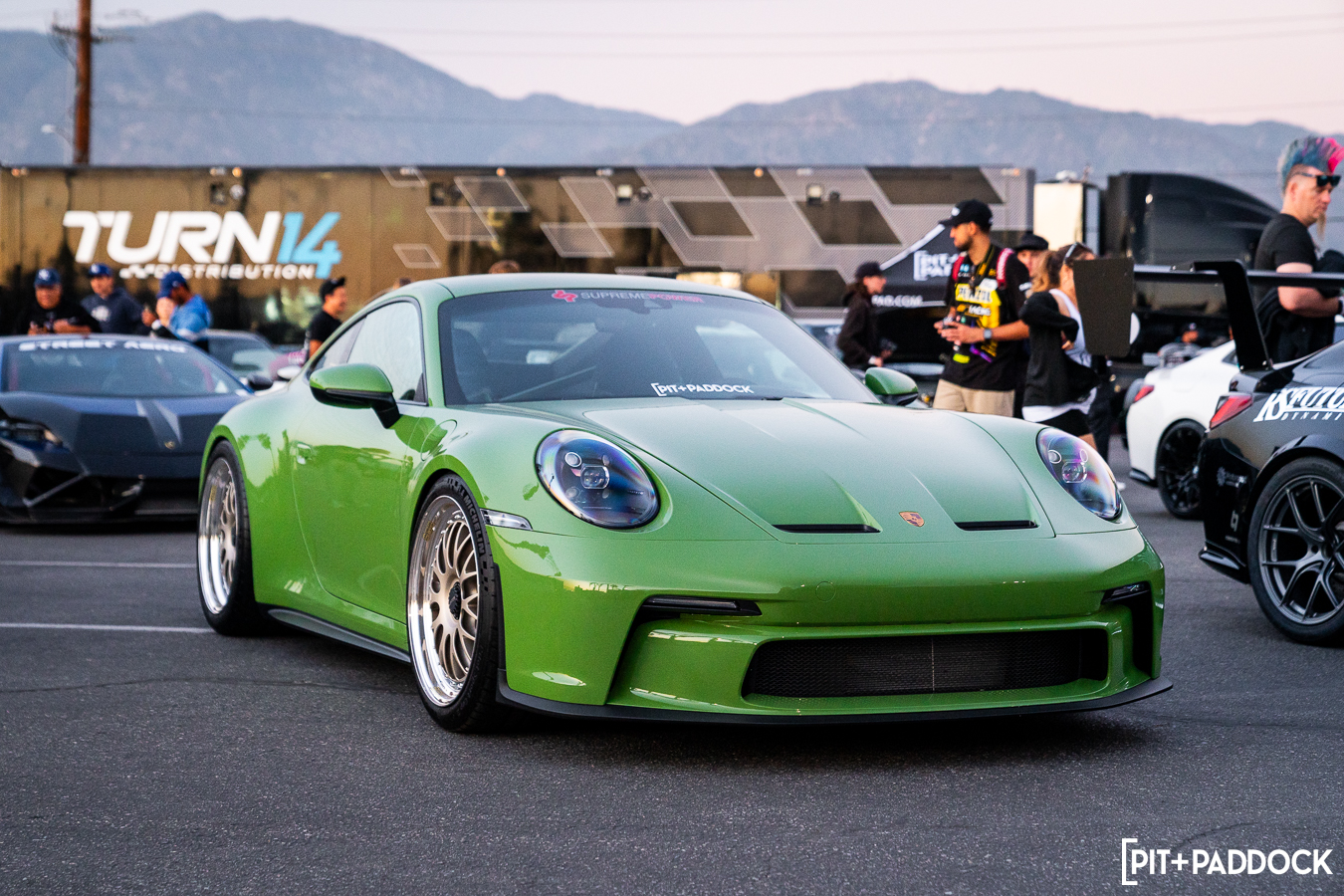 Porsche 911 GT3. Sometimes less is more, which is the case of Chris Jurilla’s Porsche 992 GT3 Touring. The Olive Green beauty on BBS Motorsport E89 wheels was recently showcased in the Akrapovic booth at Rennsport Reunion.