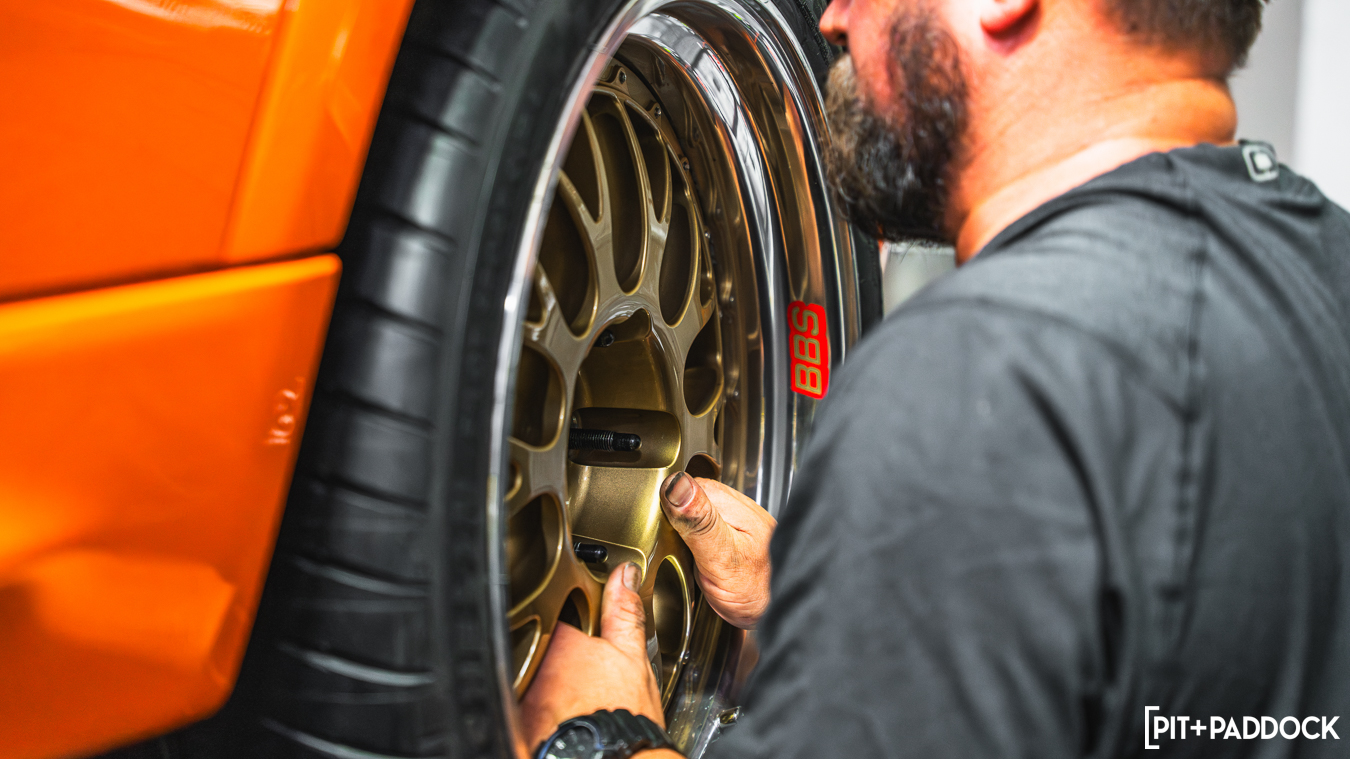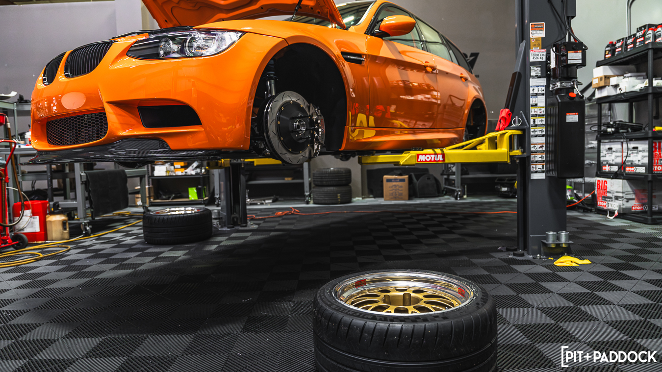 Wheels, Tires, and Alignment are Among the Finishing Touches Ahead of the Pit+Paddock x Bilstein E91 GTS Debut at SEMA 2023