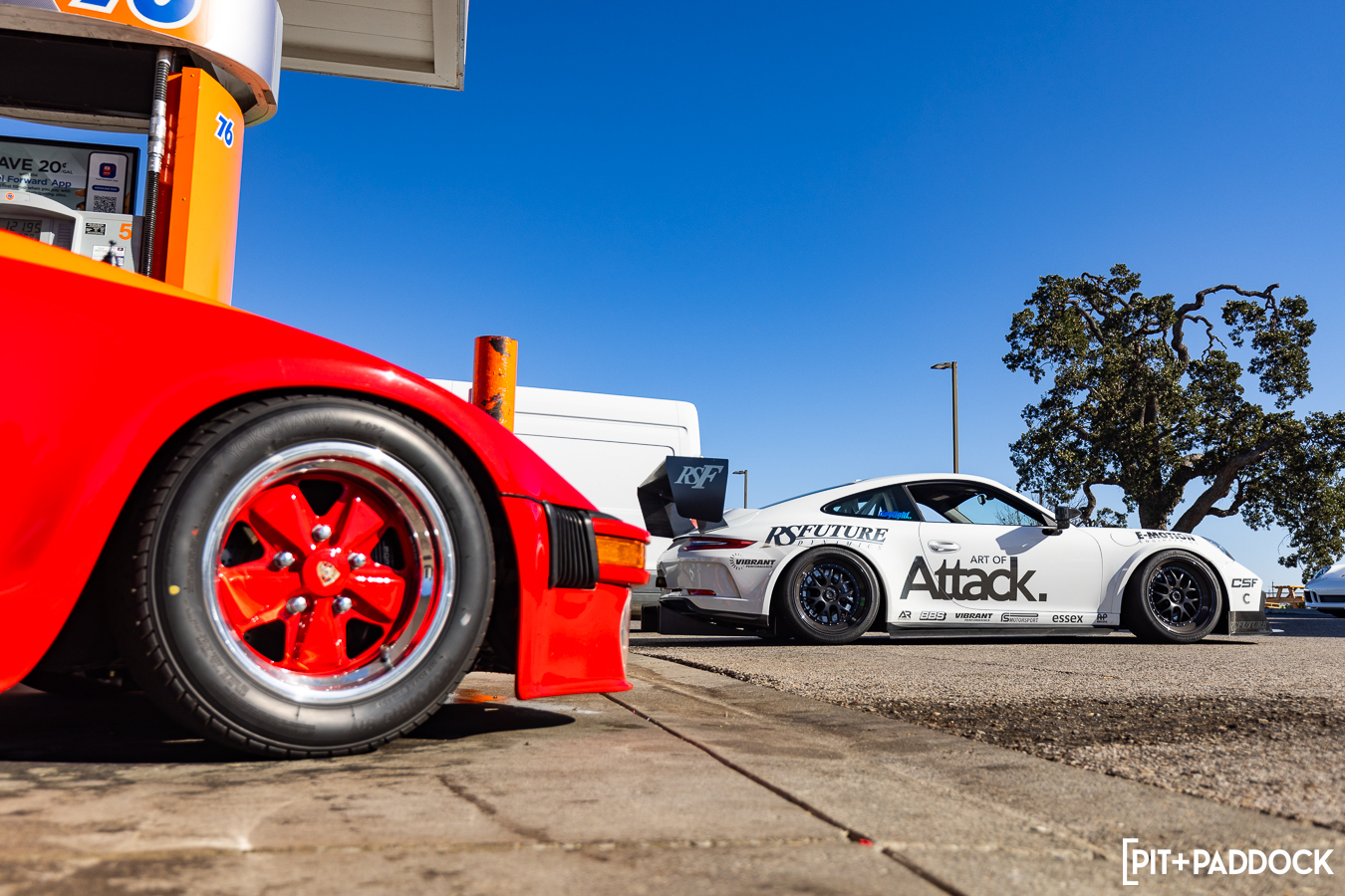 That was a long way to arrive at a modern parallel, but the two subjects you see in front of you are palpably similar. In one corner, sits Art of Attack’s extreme 991.2 GT3 Cup Evo. On the opposite end, is Waldo’s paint-to-sample, street-stylish 992 Turbo S. Indeed, a passing glance at both cars would have you guessing if there were any commonalities beyond the badge. And just like Abdul’s smash hit, there is one: CSF.