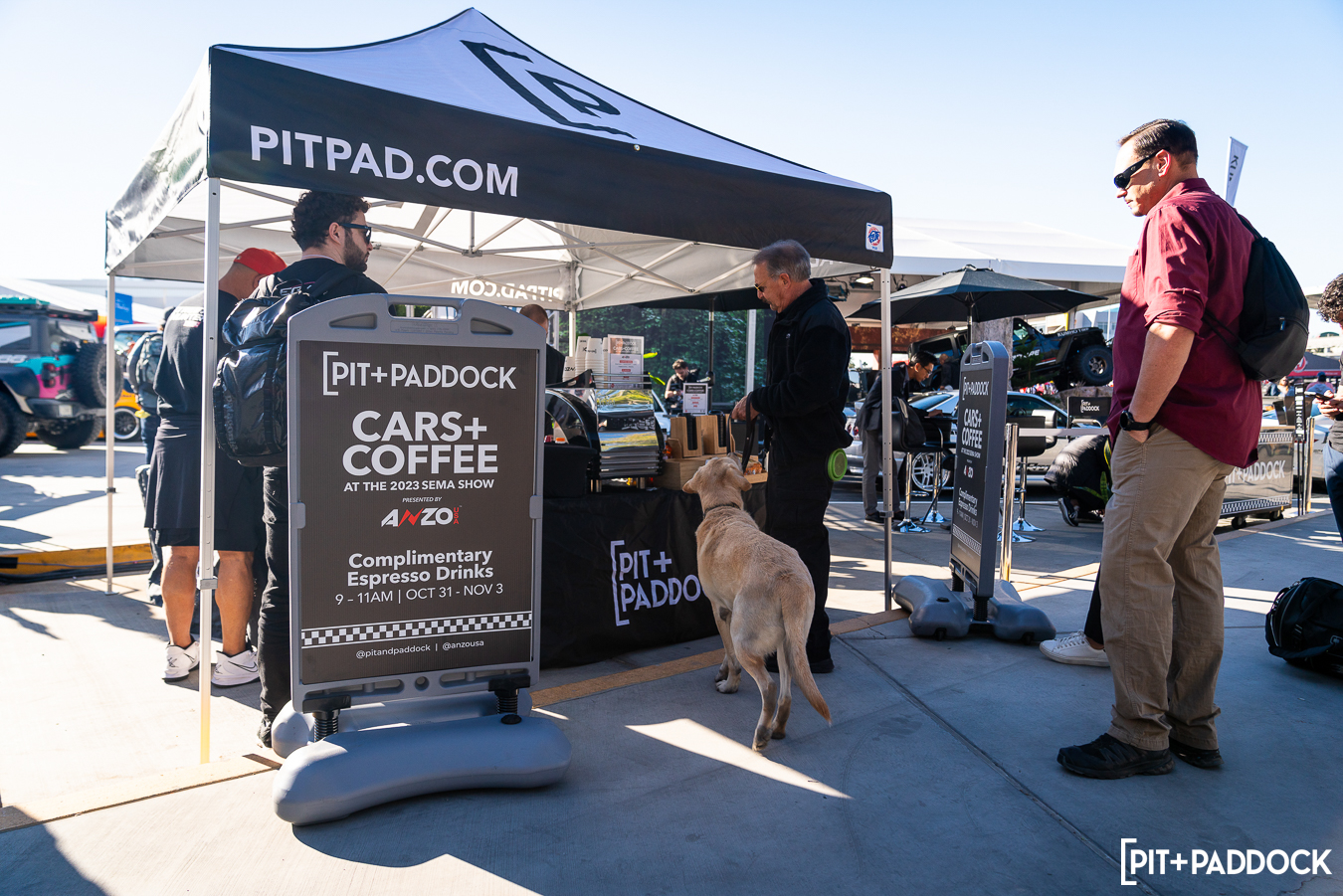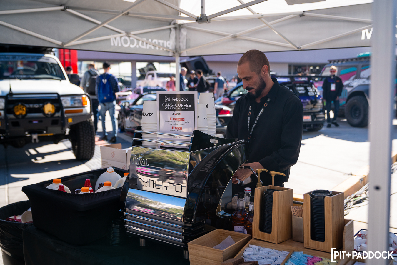 - Pit+Paddock hosts a unique pop-up coffee activation at our booth for SEMA show exhibitors and attendees to help start their days off with a proper boost.